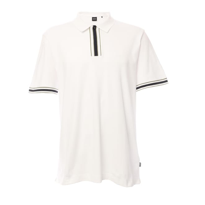 Mens BOSS Parlay 185 Contrast Tipping Polo Shirt in Interlock Cotton in white