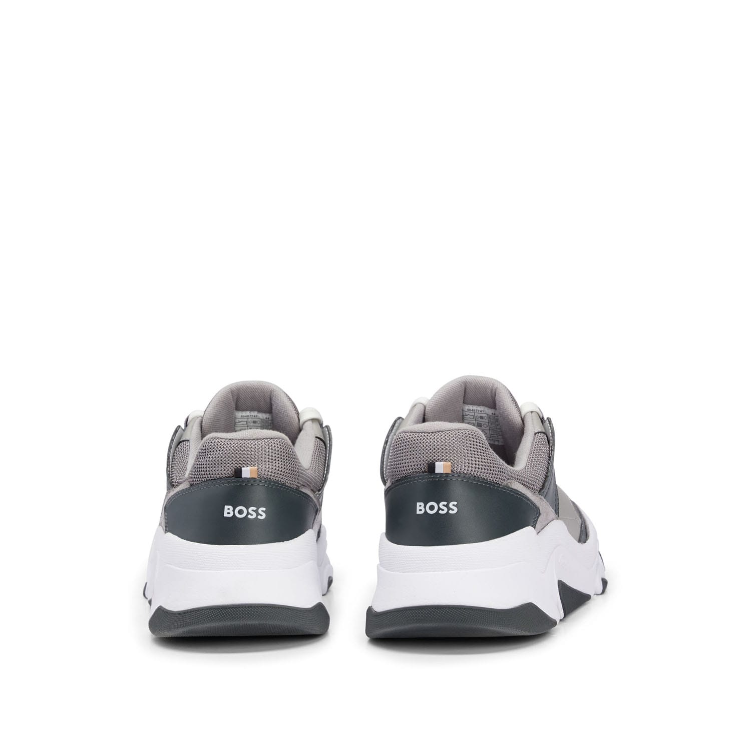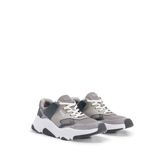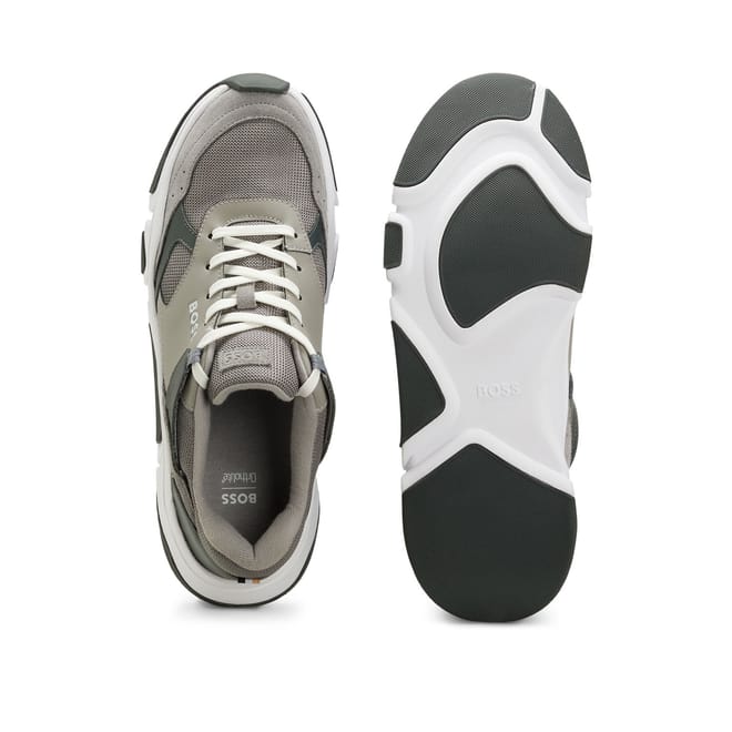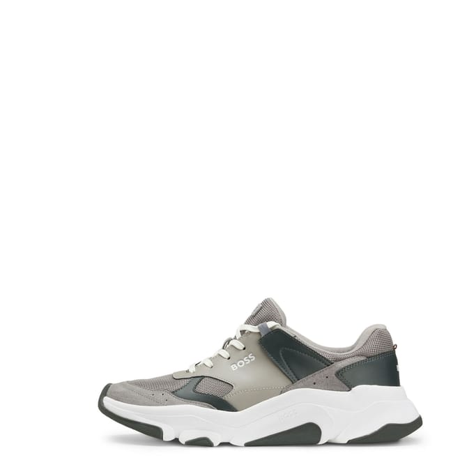 BOSS Green keep themselves relevant by providing youthful pieces that can be worn in and outside of your sporting and casual endeavours. They present these Asher Run Trainers which come in a grey colourway with a mesh and mixed material upper for the perfect sport casual trainers. Details: grey colourway, mesh and mixed material upper, contrasting cushioned mid sole, grip sole, padded heel support, tonal flat lace fasten and branding to the side wall, tongue and heel to complete. -
