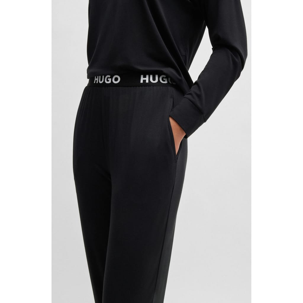 Womens HUGO Unite Logo-Waistband Pyjama Bottoms in Stretch Jersey in black