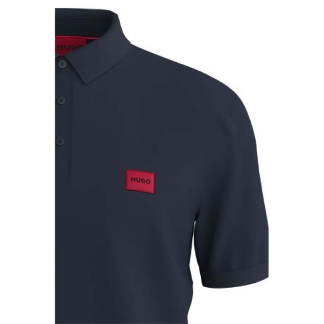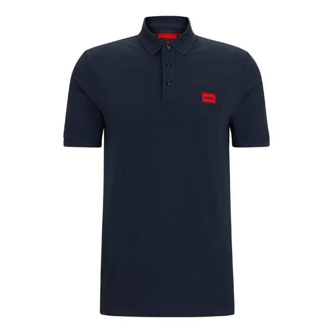 Mens HUGO Dereso Logo Label Slim Fit Polo Shirt in Cotton Piqué in dark blue.