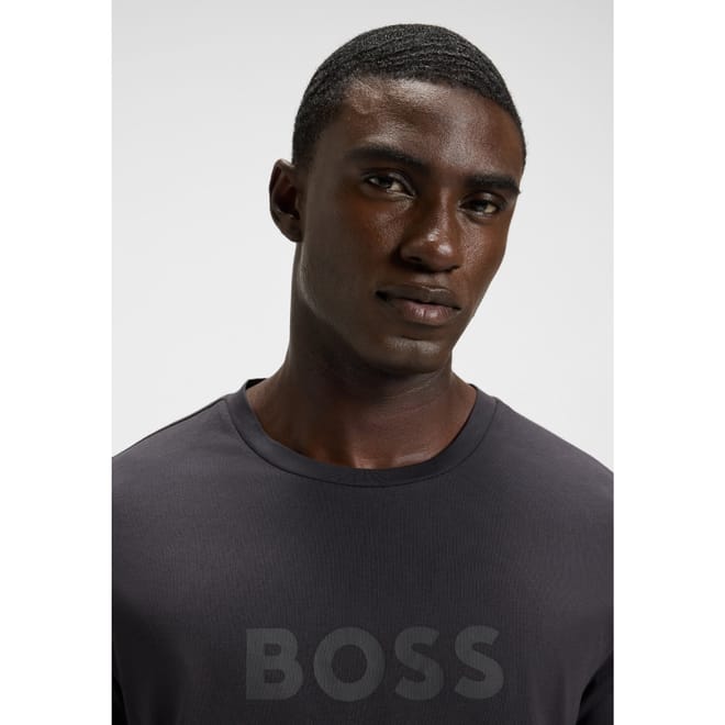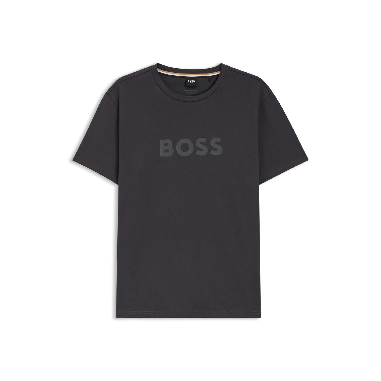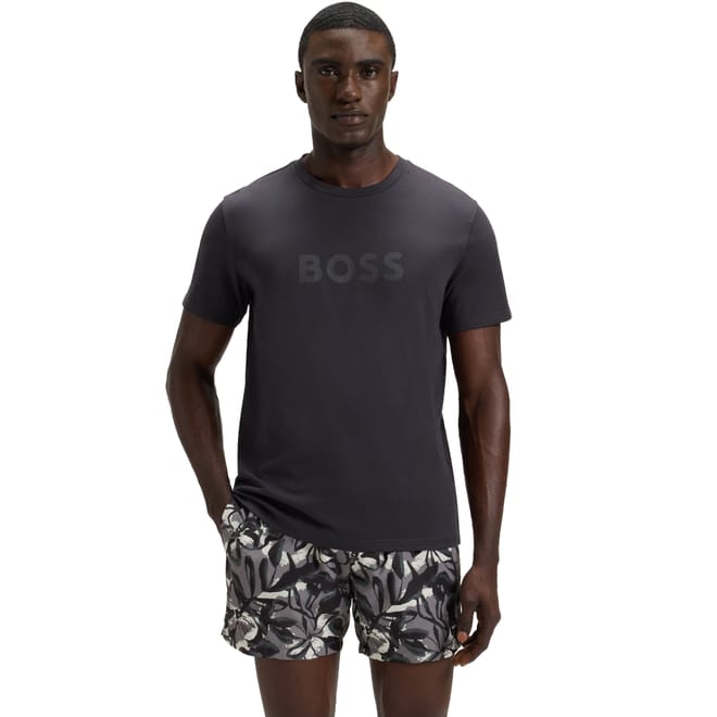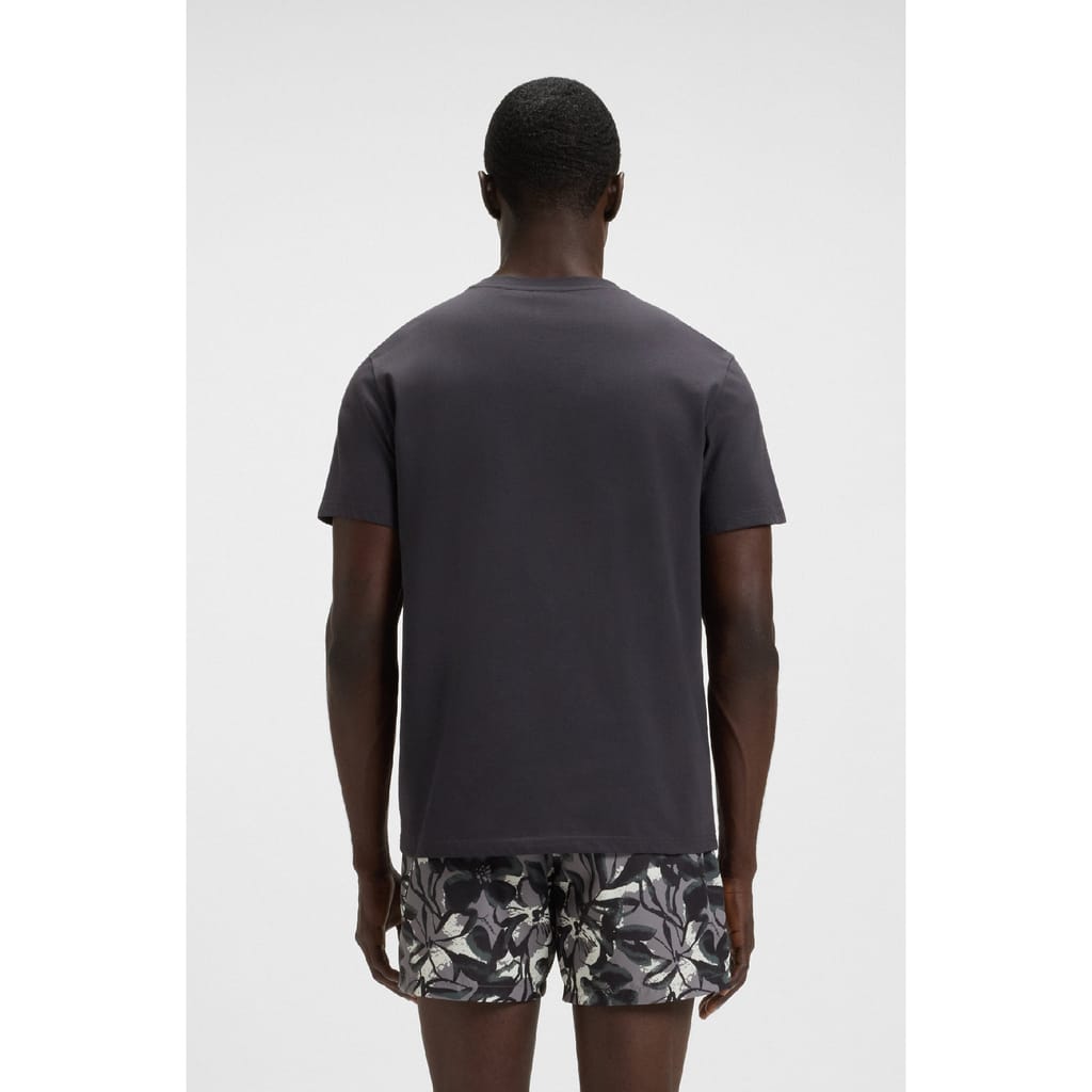 Mens BOSS Logo Print Beach T-Shirt in Cotton Jersey in dark grey.