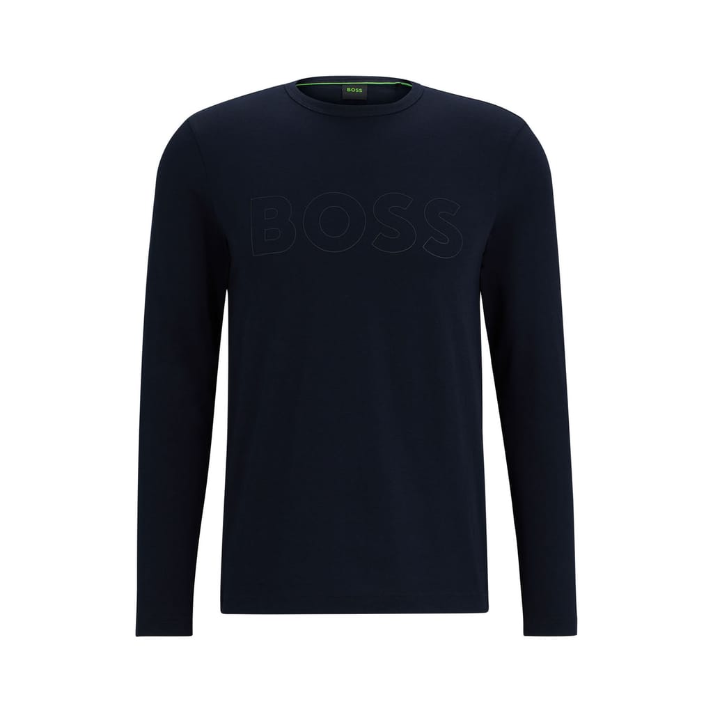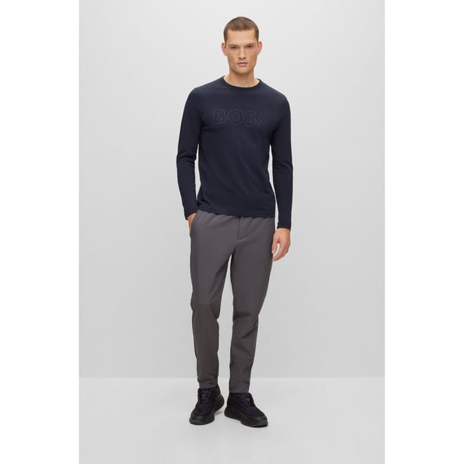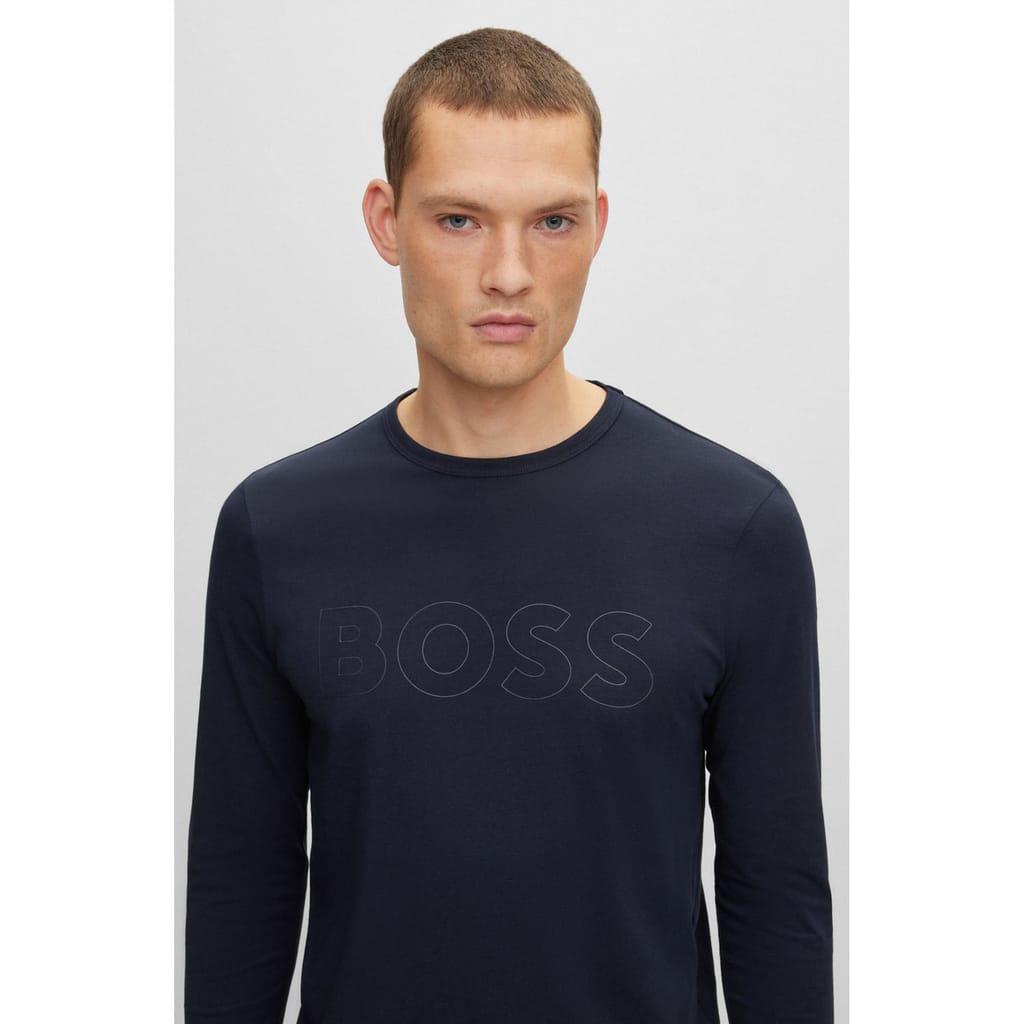 A versatile long-sleeved T-shirt by BOSS Menswear. Engineered in soft jersey, this crew-neck top is detailed with a logo across the chest.