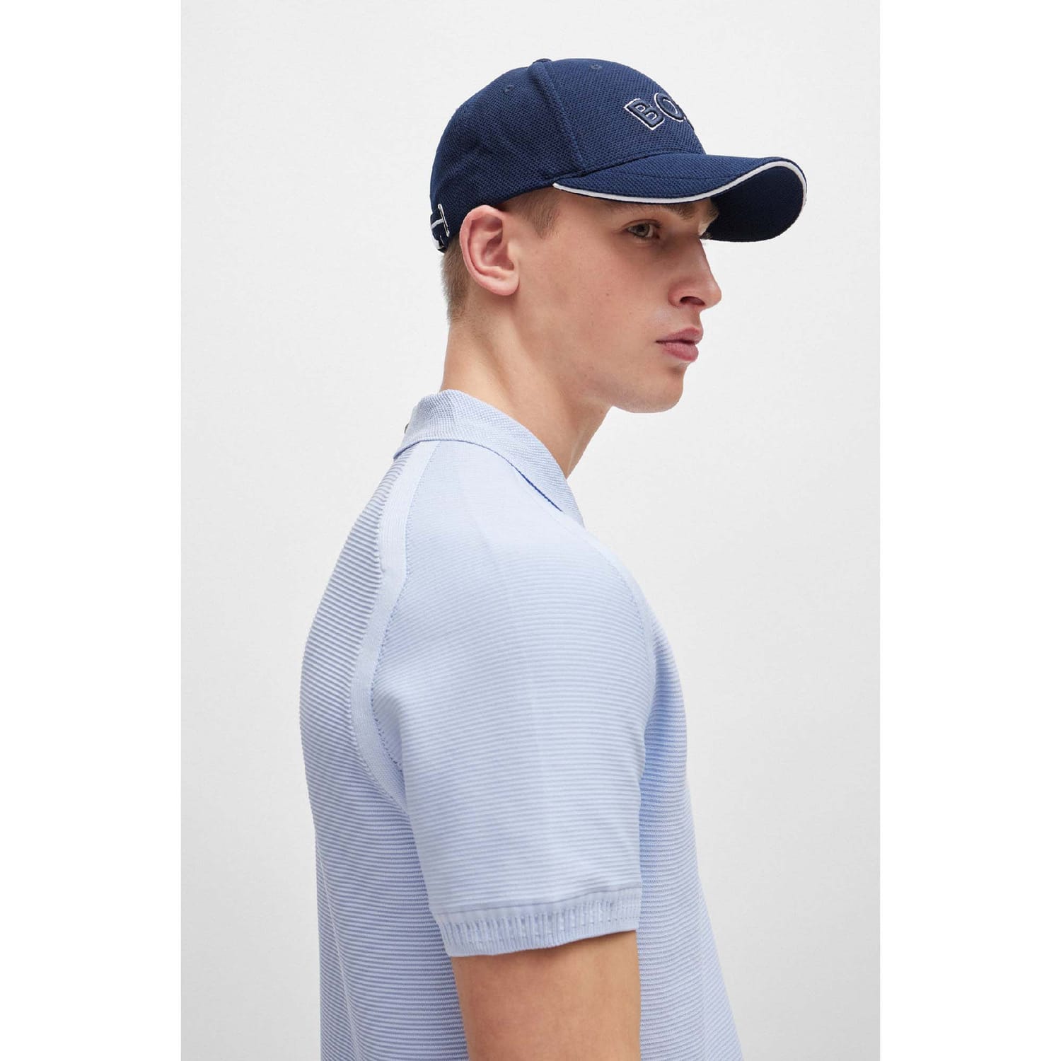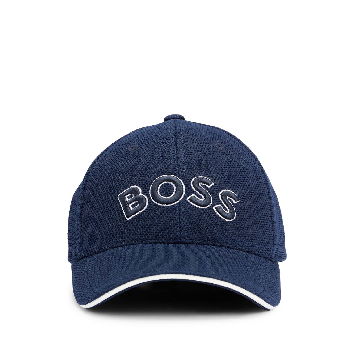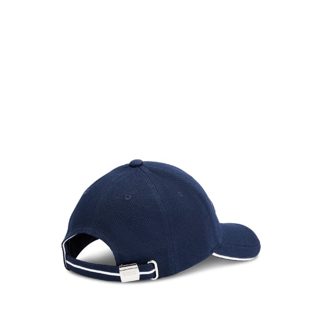 Mens BOSS Curved Logo Cap in Stretch Piqué in dark blue