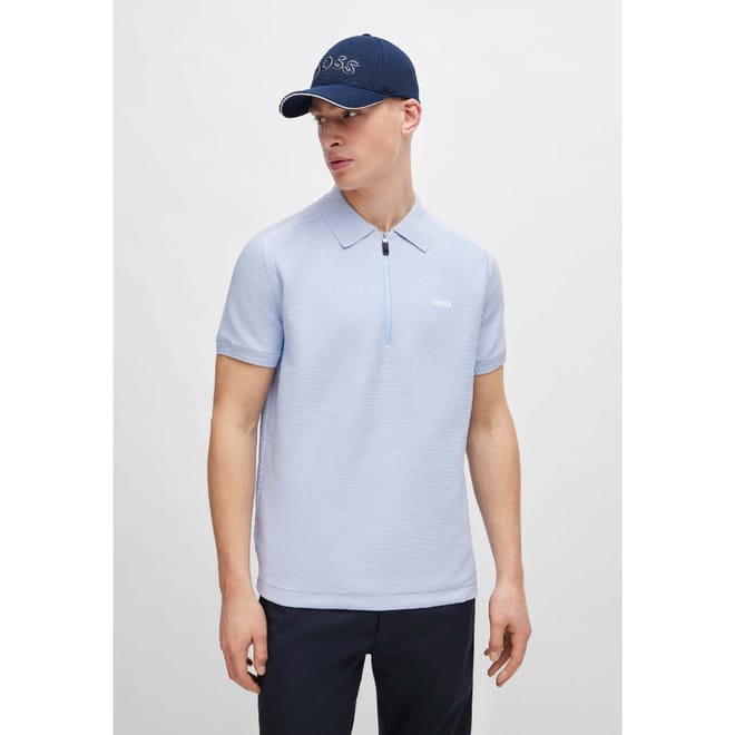 A sporty cap by BOSS. Designed in stretch material with a piqué structure, this cap is detailed with a 3D curved logo at the front panel. A branded closure completes this accessory.