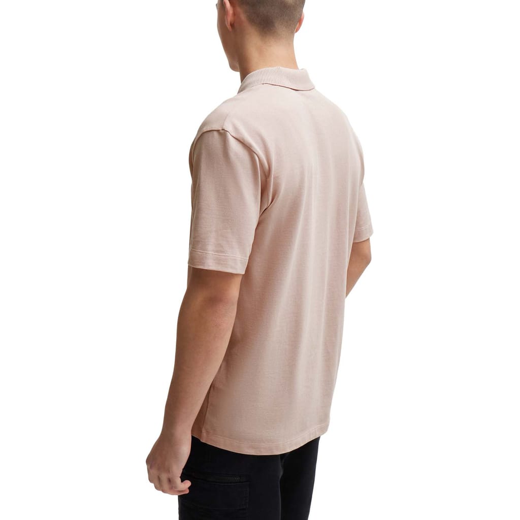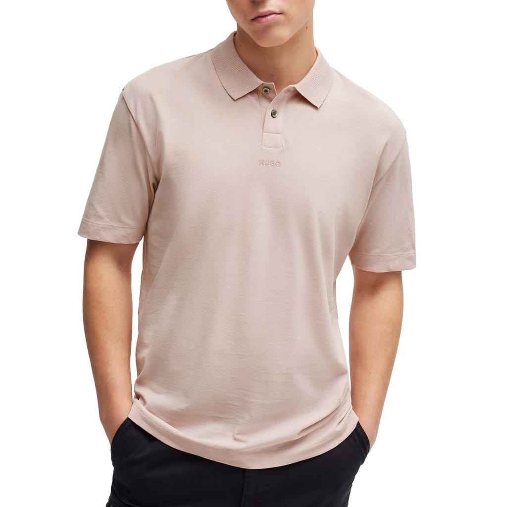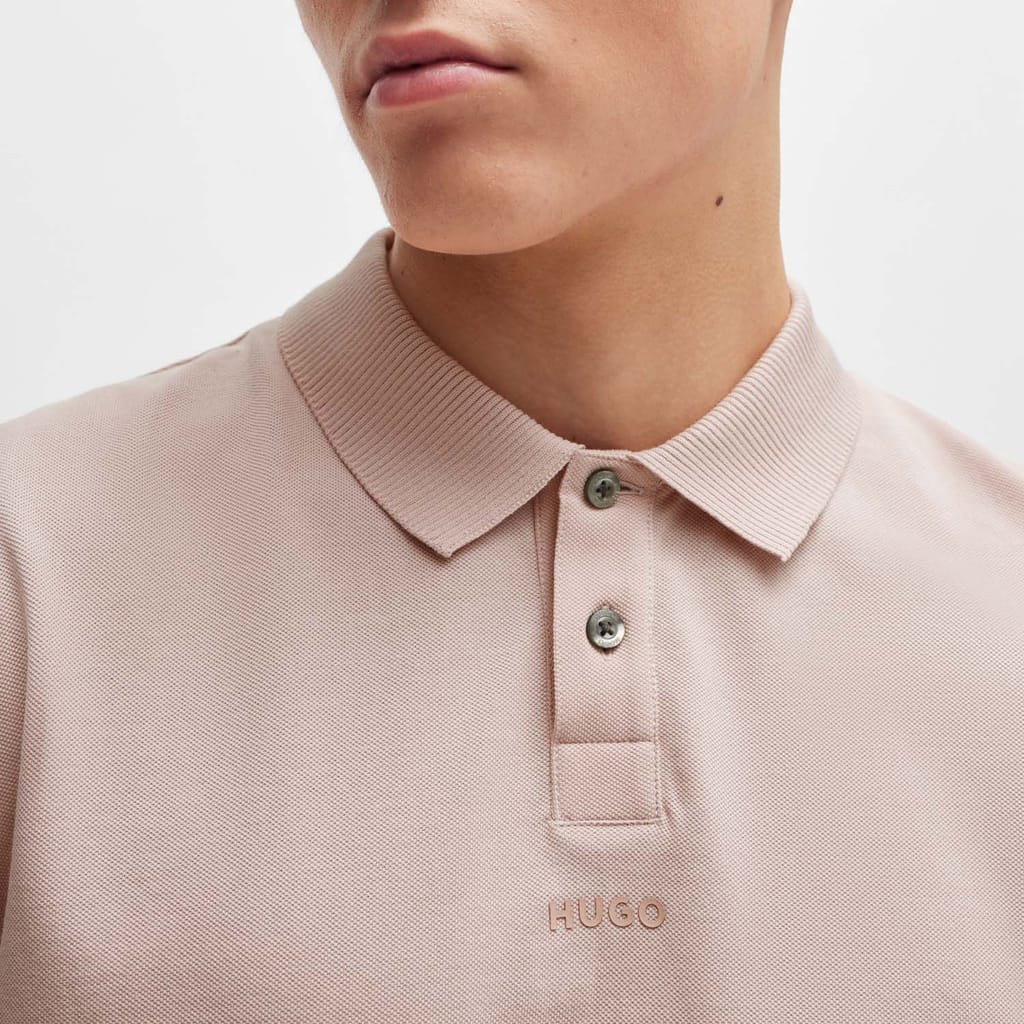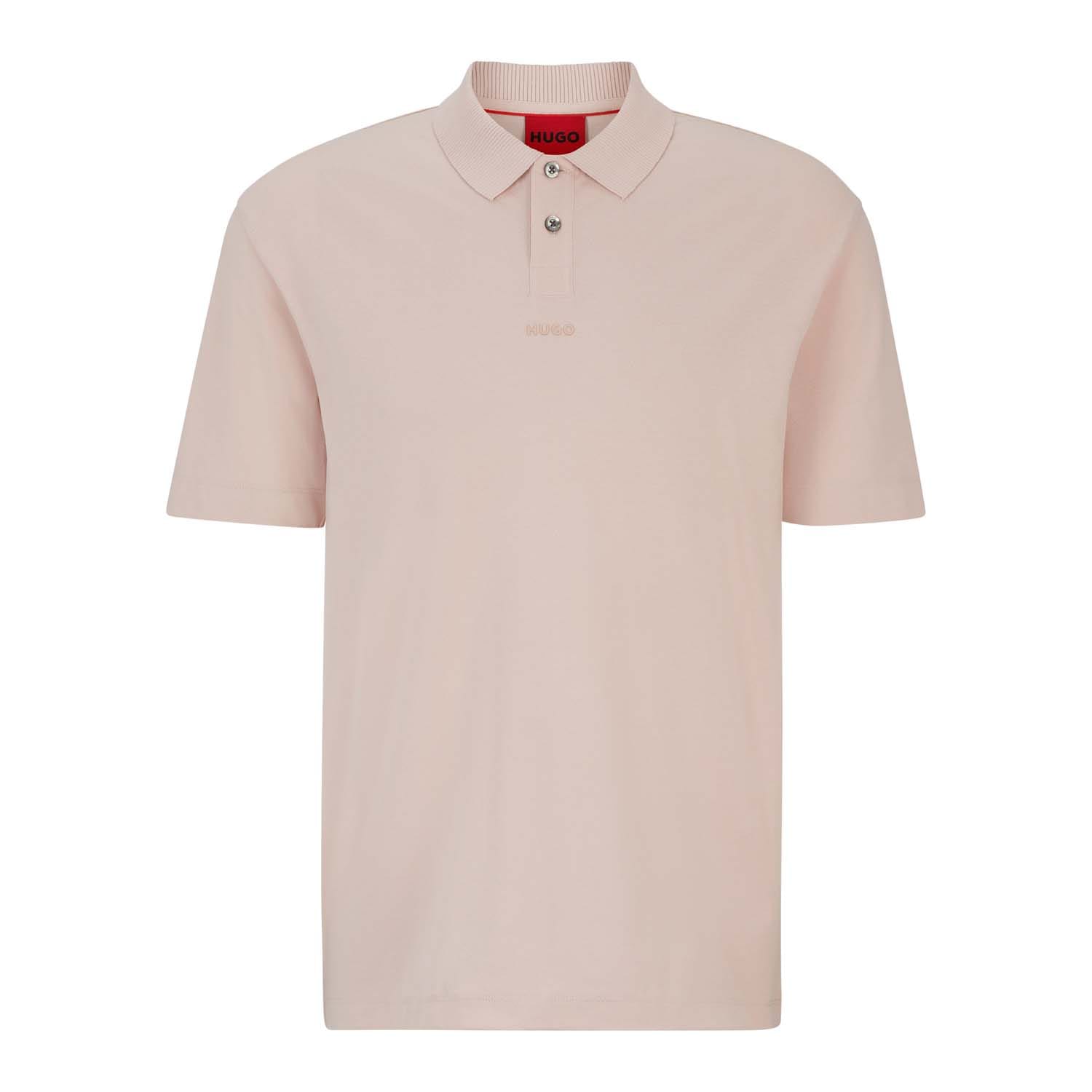 Mens HUGO Dangula Logo Print Polo Shirt in Cotton Piqué in light / pastel pink.