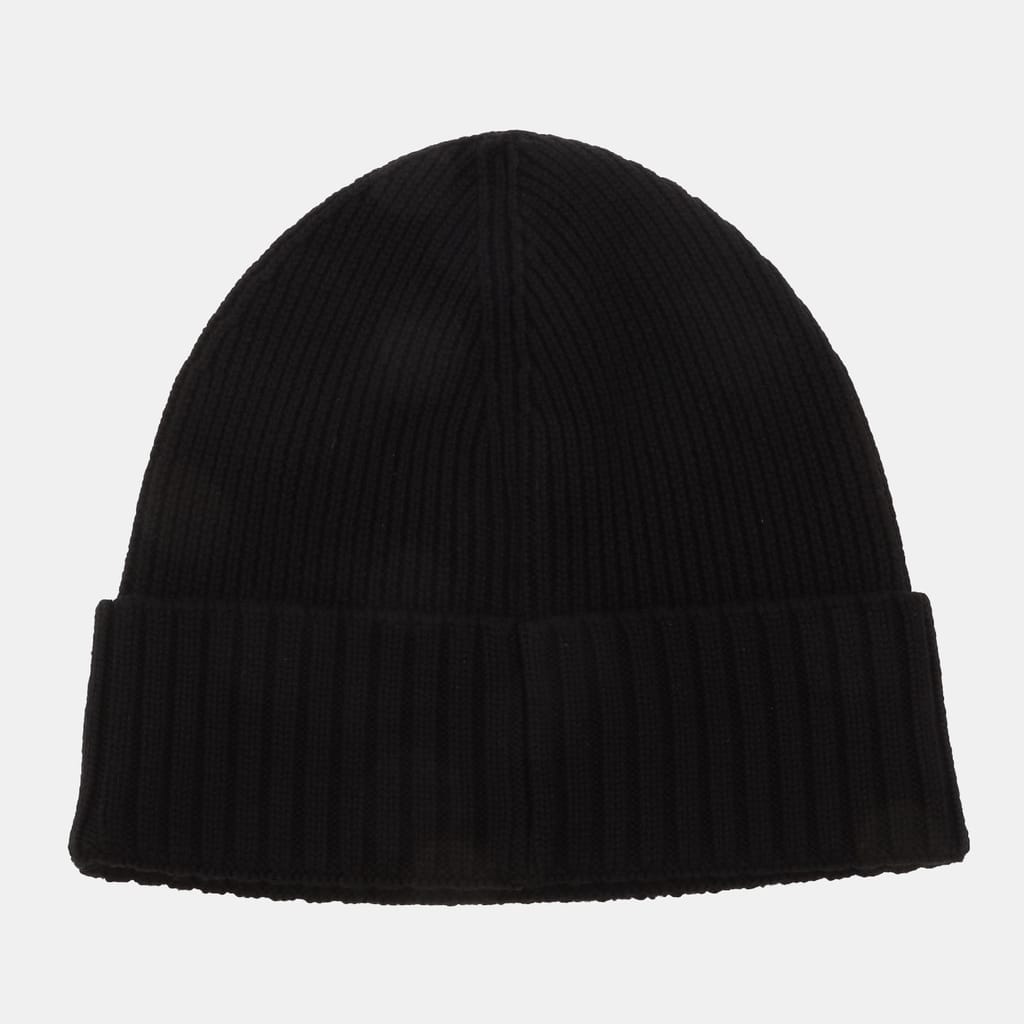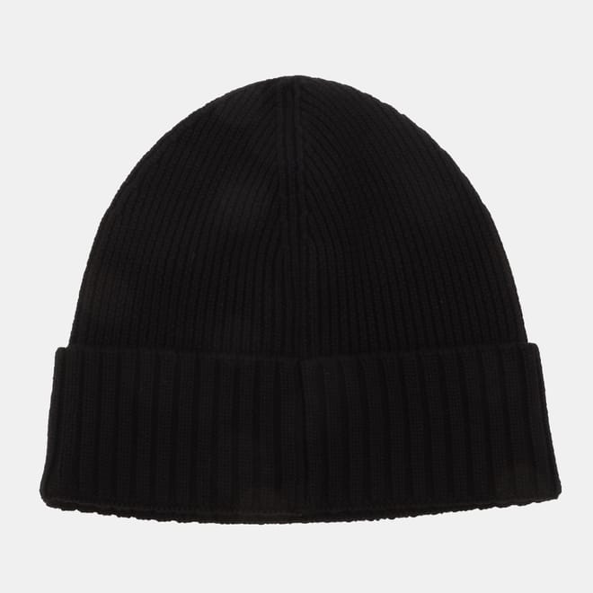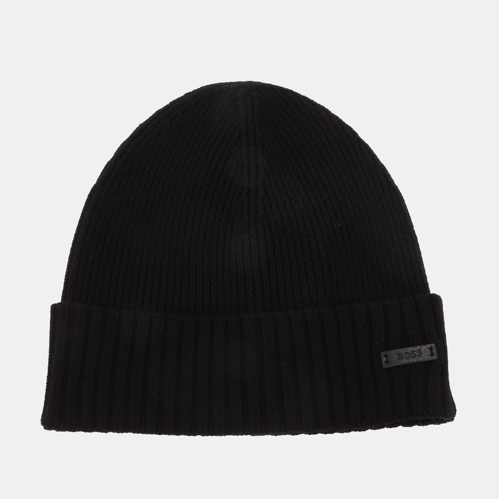 Mens BOSS Fati Beanie Hat in Virgin Wool with Logo Plaque in black.
