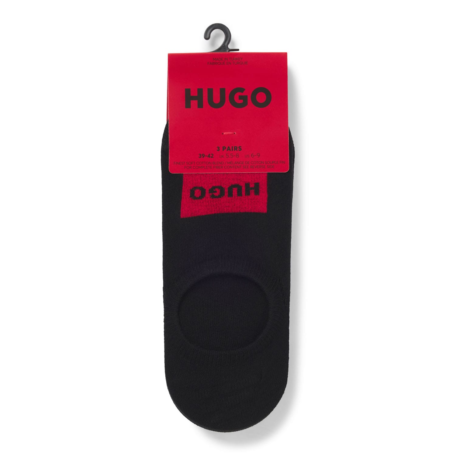 Mens HUGO Three-pack of invisible socks with red logos in black