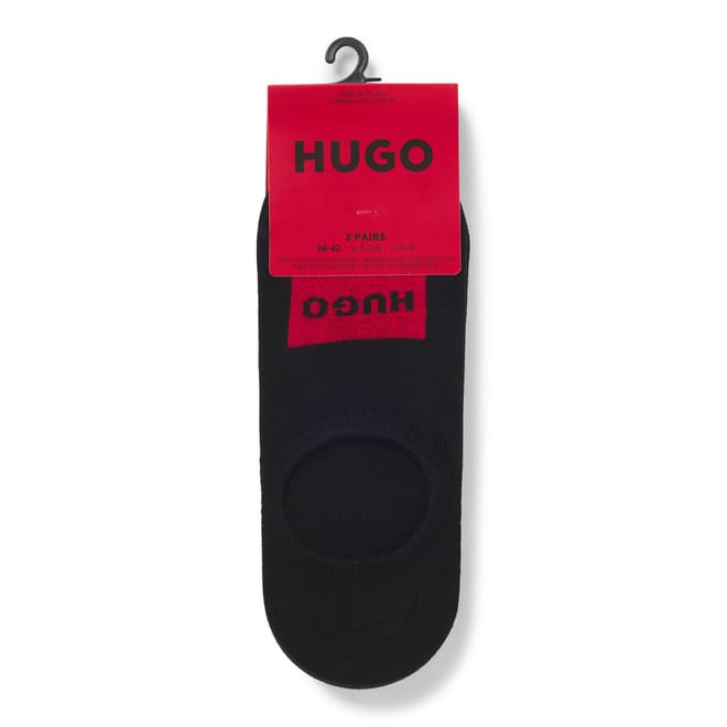 Crafted in a cotton-rich blend, this trio of HUGO Menswear invisible socks is ideal for wearing with low-profile footwear. Red logo labels.