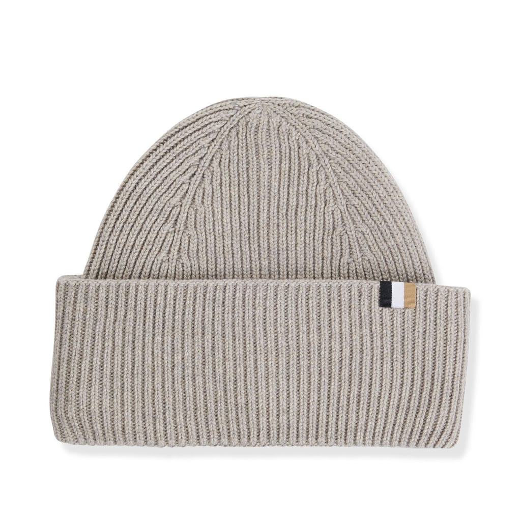 A super-soft beanie hat by BOSS. Featuring a signature-stripe trim, this knitted accessory is crafted in a ribbed blend with wool and cashmere.