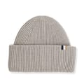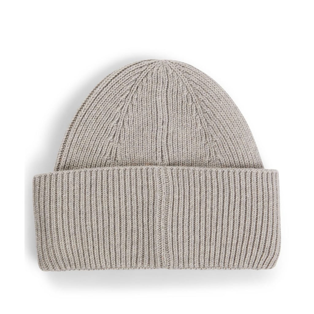 Womens BOSS Laura Ribbed beanie hat with signature-stripe trim in light grey.