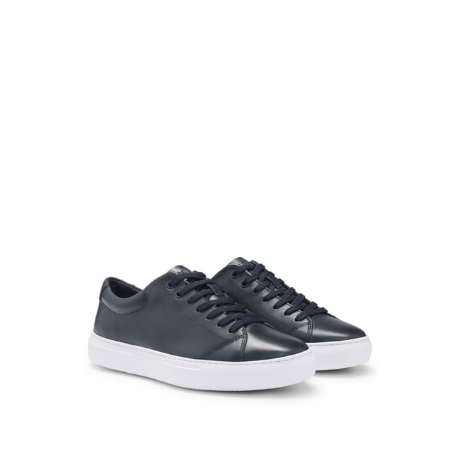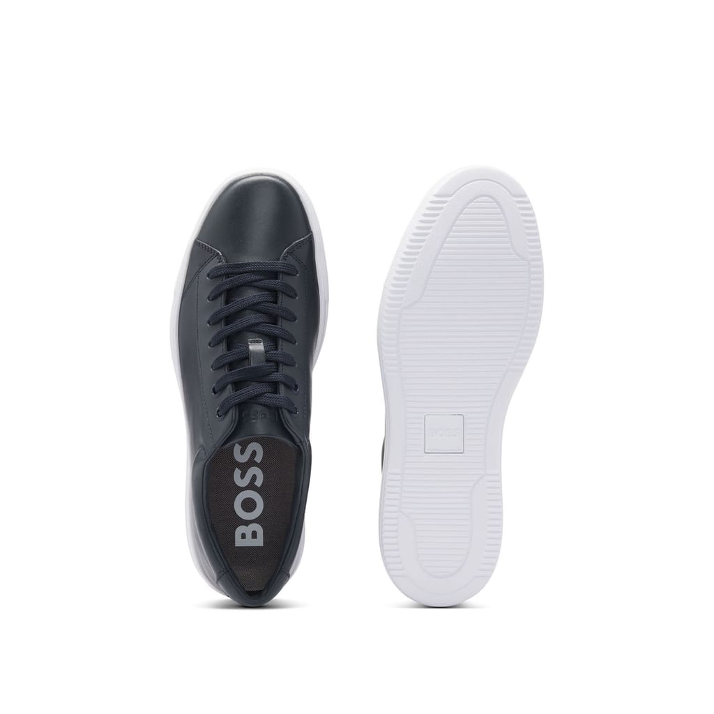Mens BOSS Enlight Branded-counter Trainers in Nappa Leather in dark blue