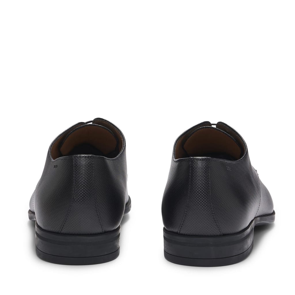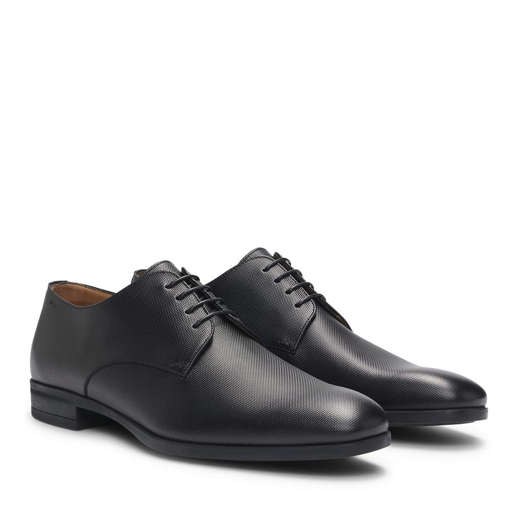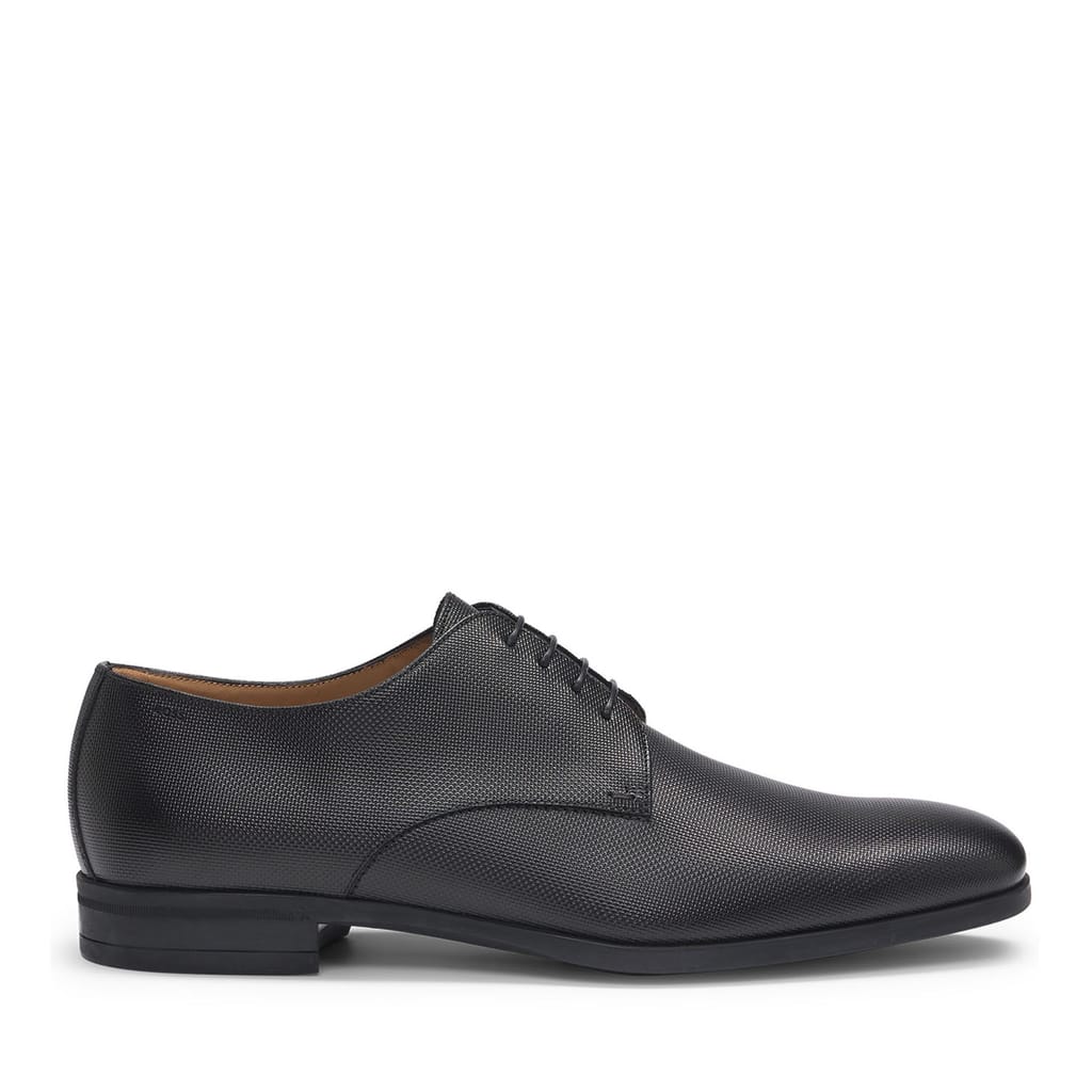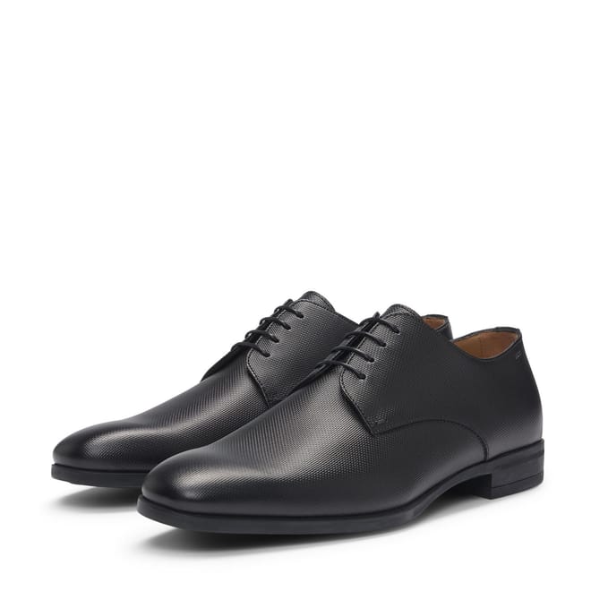 Mens BOSS Kensington Derby Shoes in Structured Leather with padded insole in black.