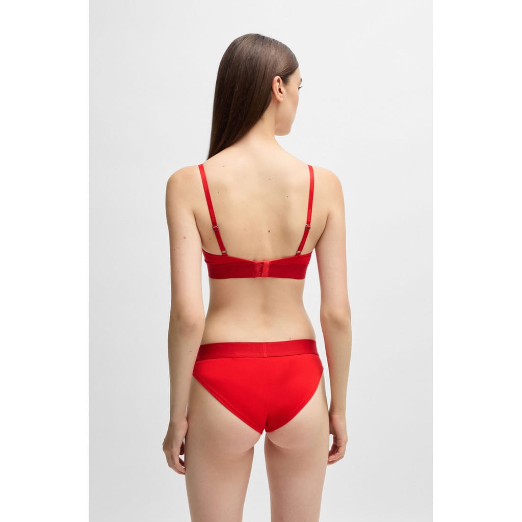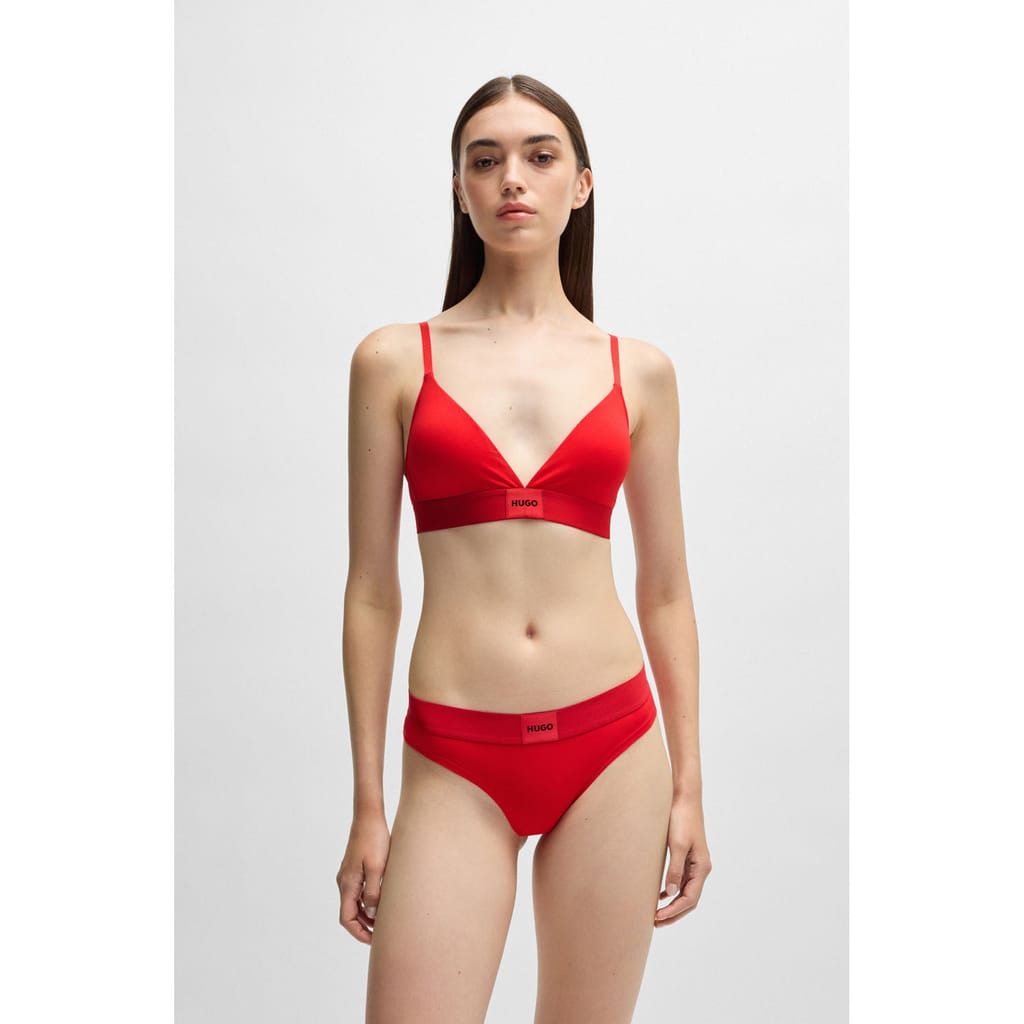 A soft triangle bra crafted in organic cotton with stretch by HUGO. This adjustable design is trimmed with a red logo label.