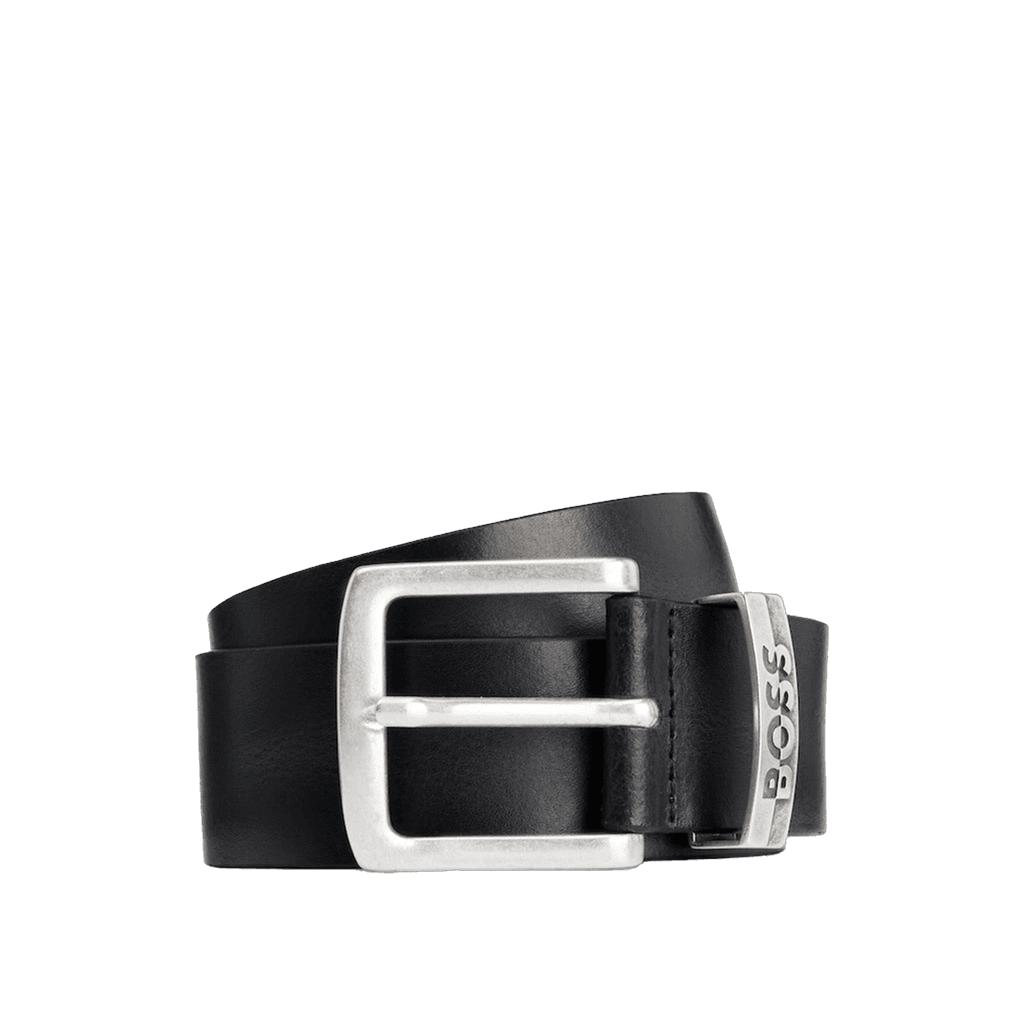 Mens BOSS Jen Leather Belt with Logo Keeper in black