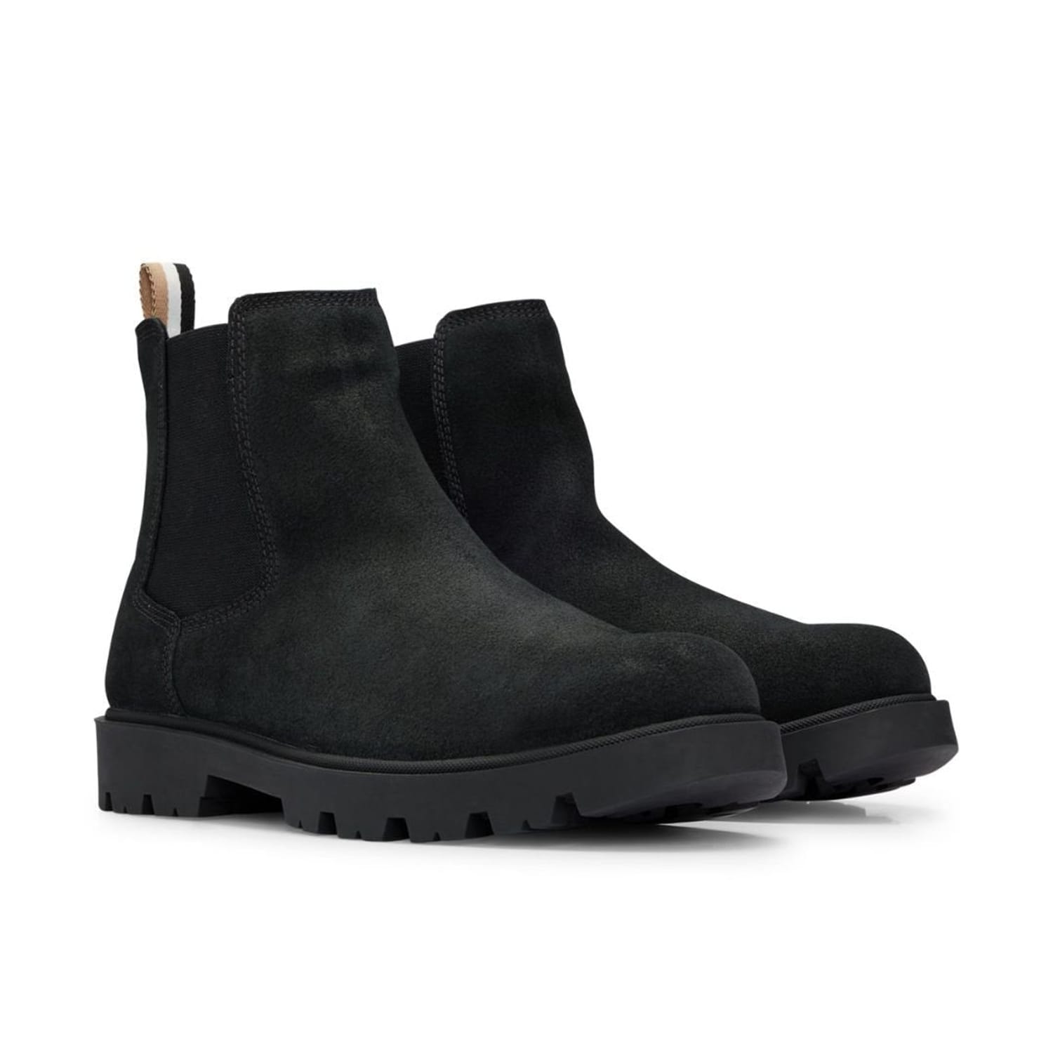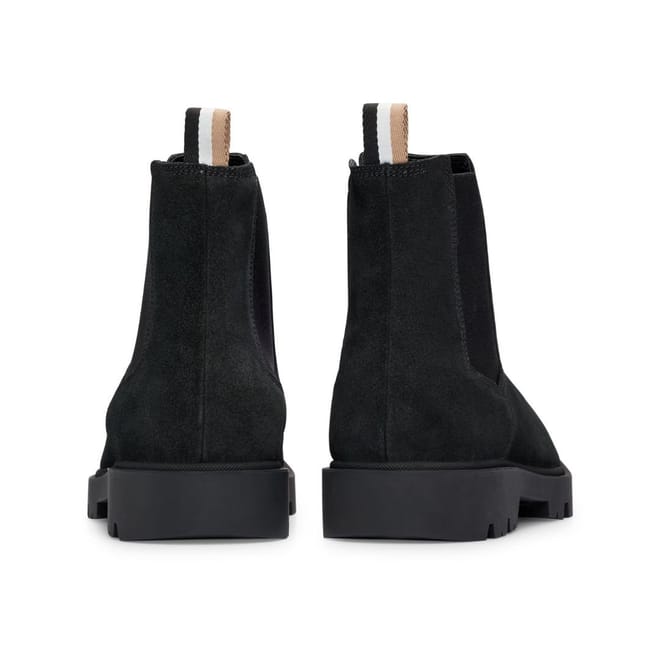 Mens Boss Signature Striped Tape Chelsea Boots in black.