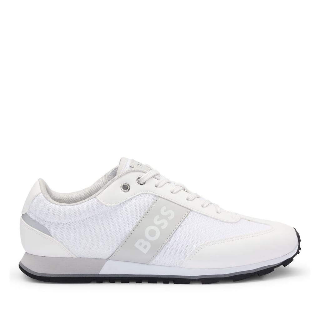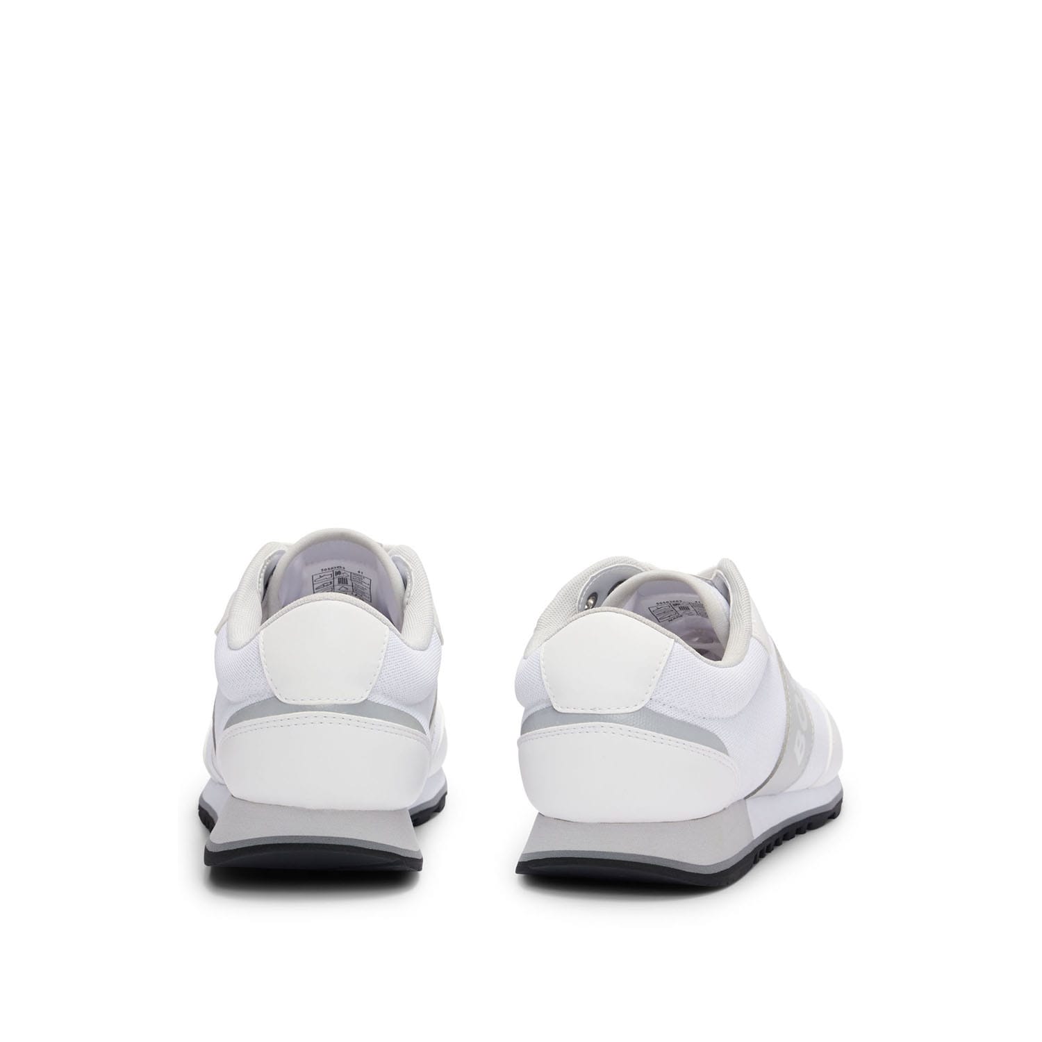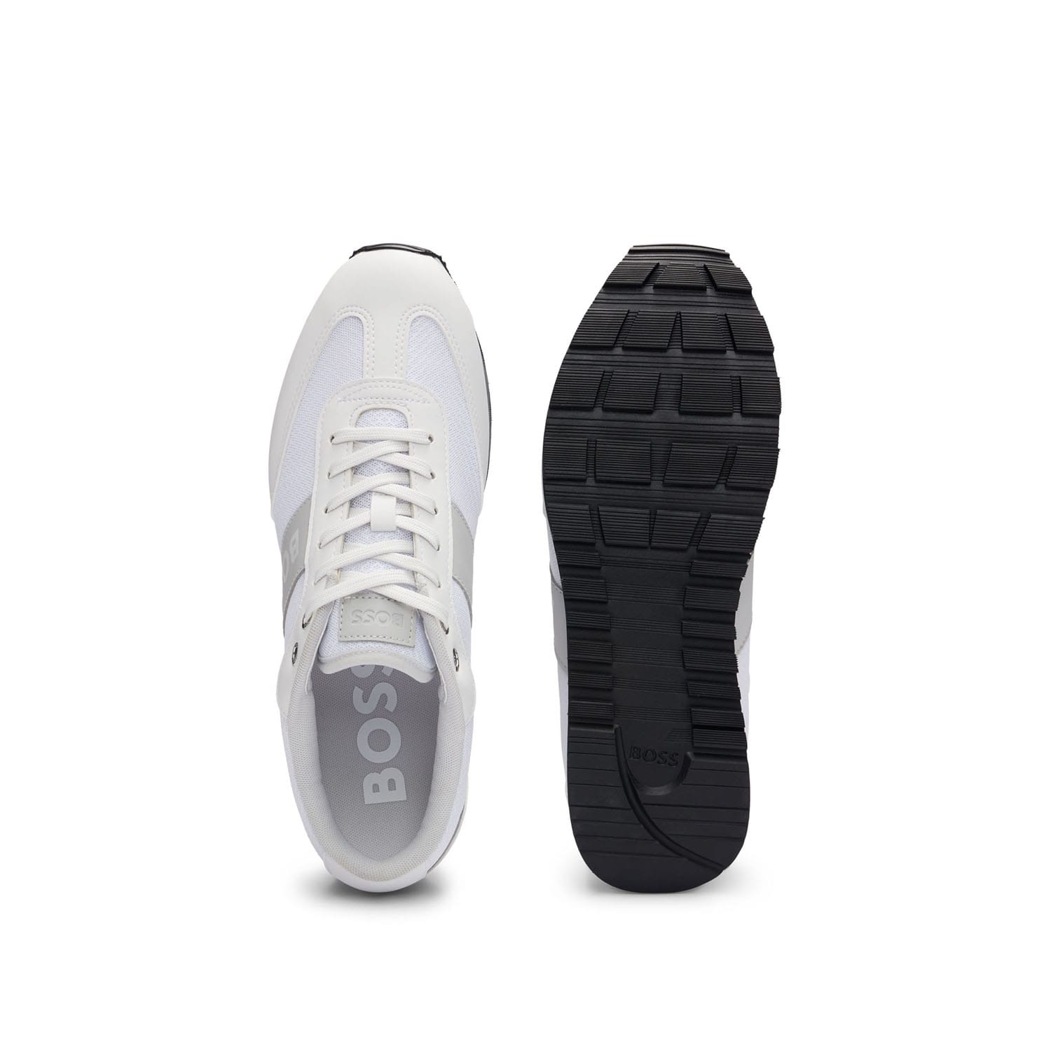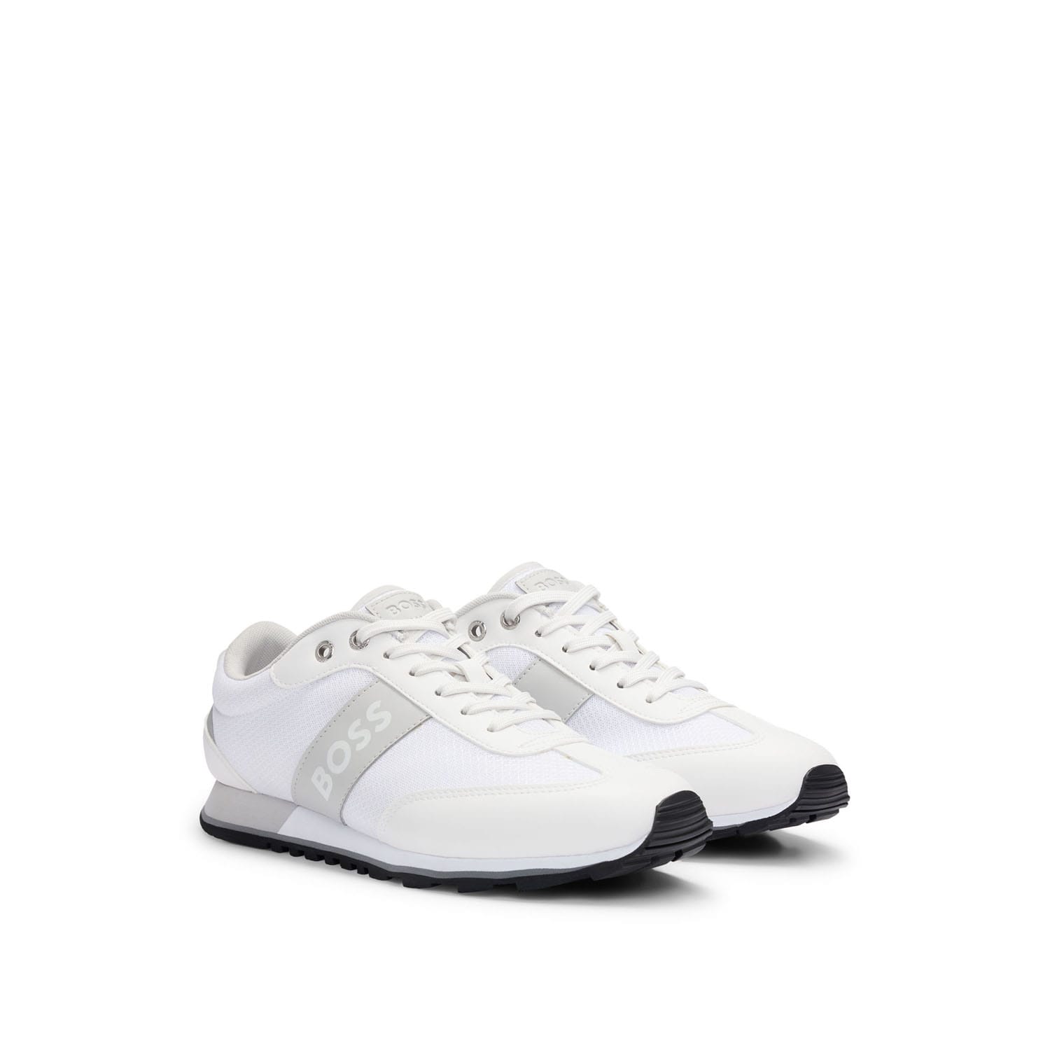 Mens BOSS Parkour Mixed Material Trainers with Branding and Mesh in white