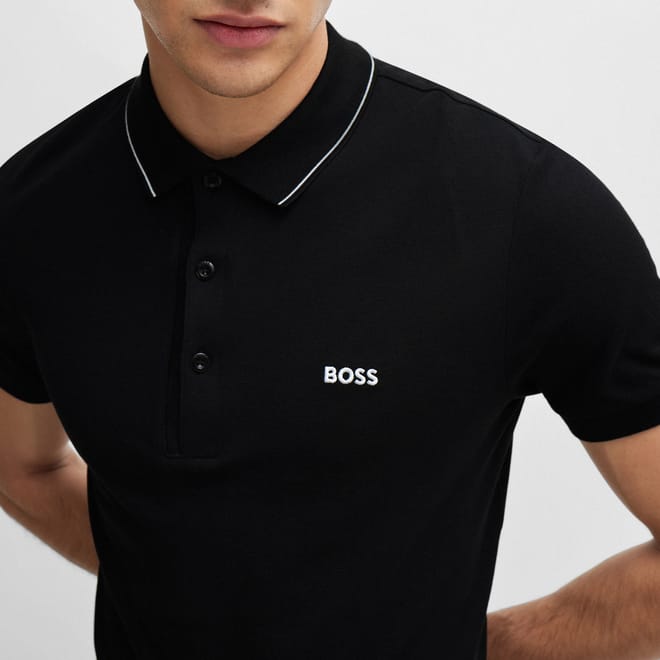 Mens BOSS Paule 4 Cotton Piqué Slim Fit Polo Shirt with tonal logo in black