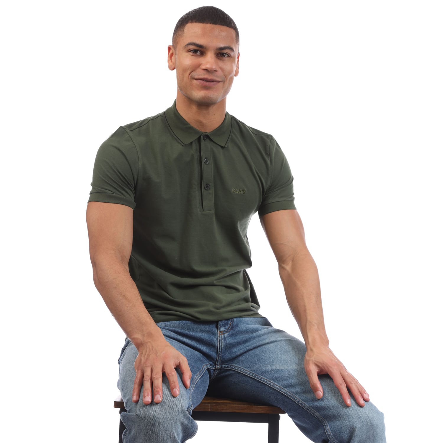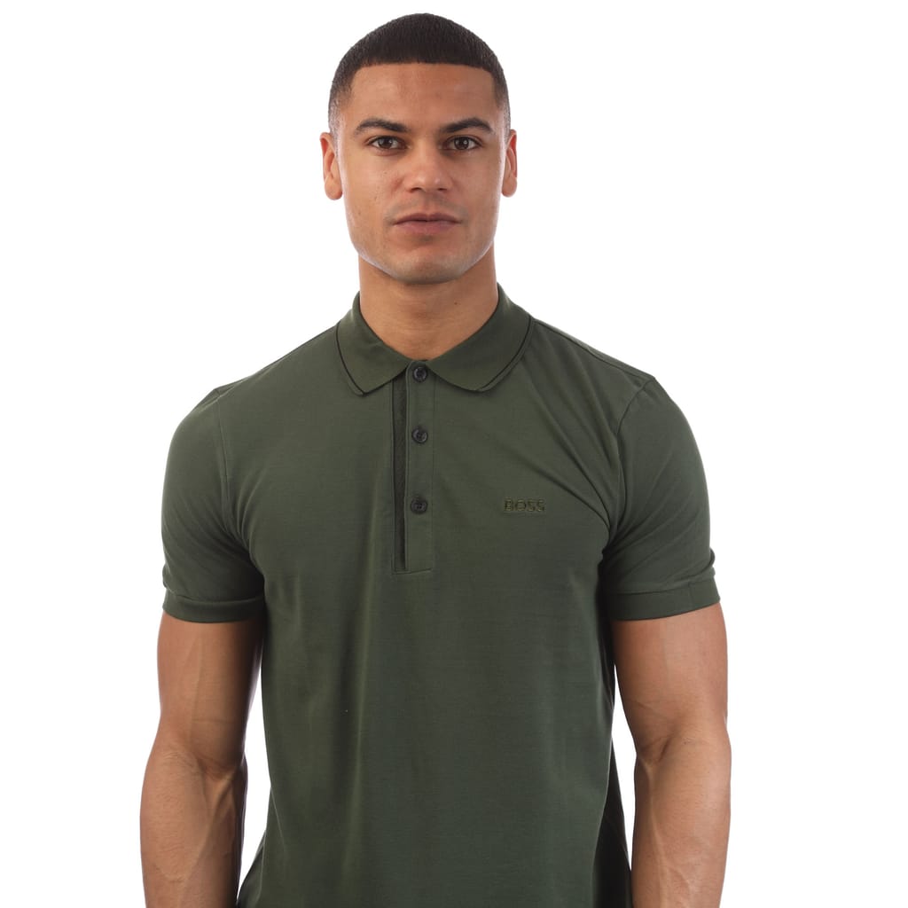 Mens BOSS Paule 4 Cotton Piqué Slim Fit Polo Shirt with tonal logo in open green.
