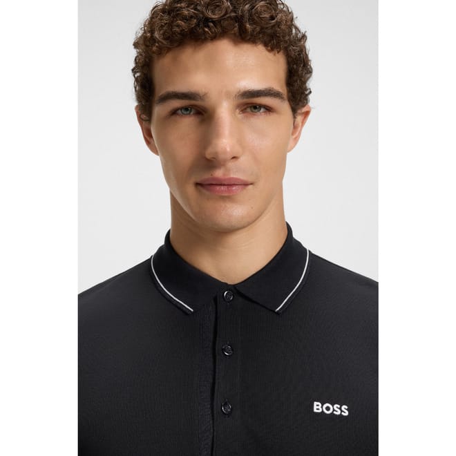 A cotton-piqué polo shirt by BOSS Menswear. Cut to a defined fit, this top features a tonal logo and stripe details.