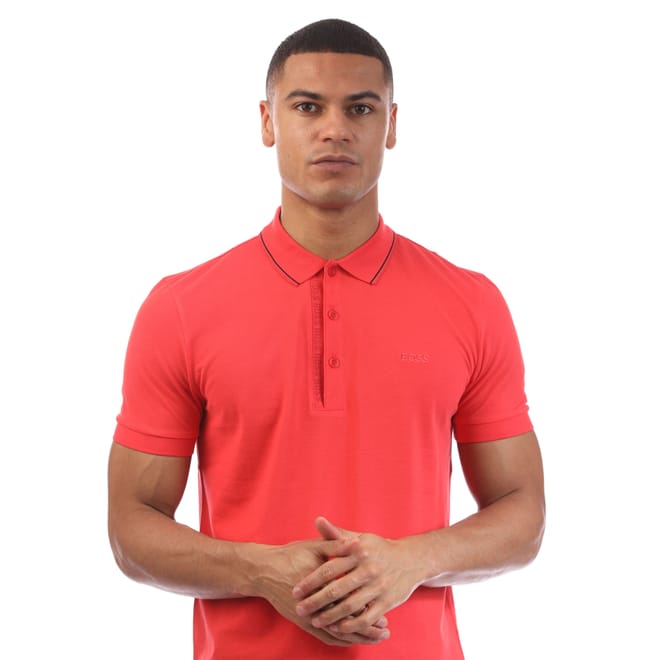 Mens BOSS Paule 4 Cotton Piqué Slim Fit Polo Shirt with tonal logo in open red