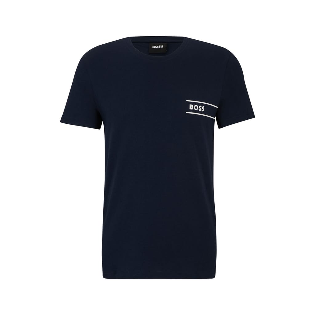 Mens BOSS Cotton-jersey underwear T-shirt with stripes and logo in dark blue