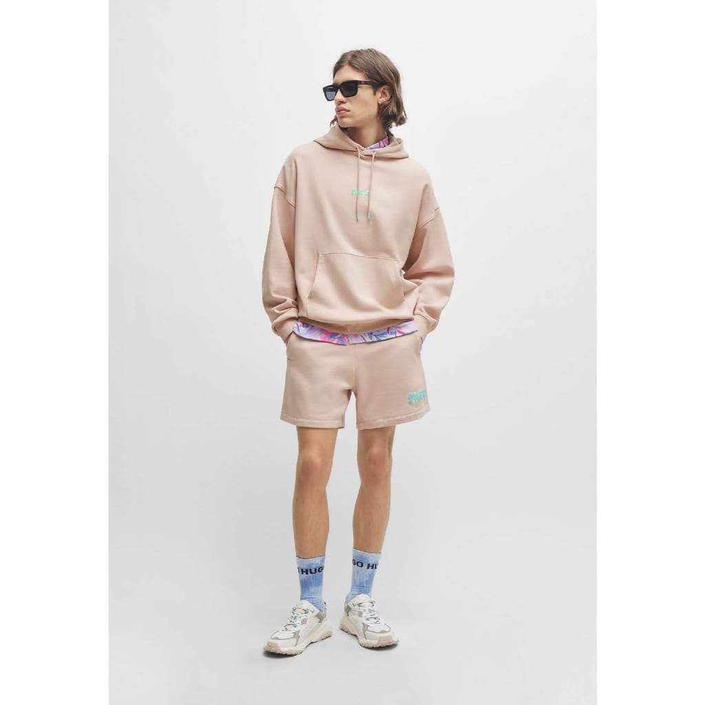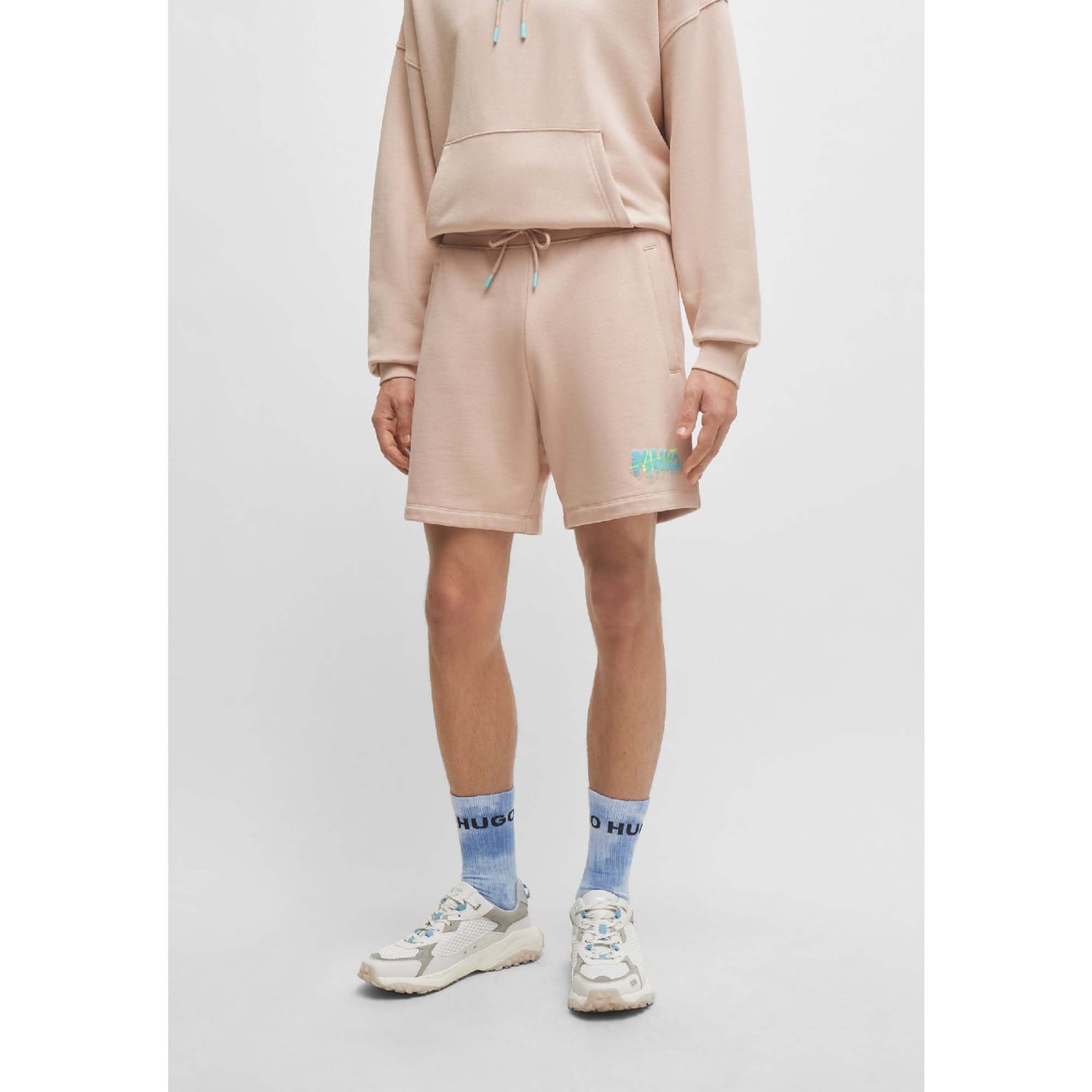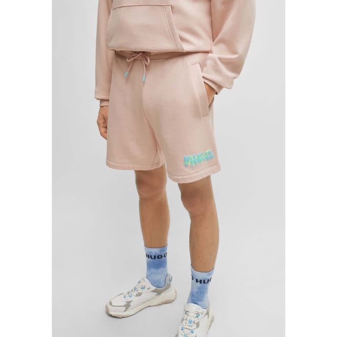 Casual shorts cut to a relaxed fit in soft cotton terry with a seasonal melted logo at the left leg by HUGO Menswear.