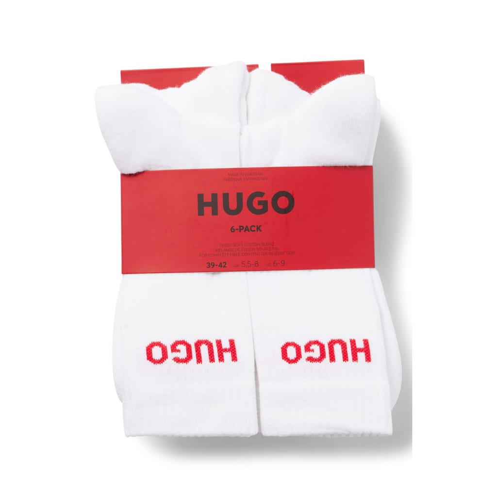 Mens HUGO Six-pack of logo-detail socks in a quarter length in white