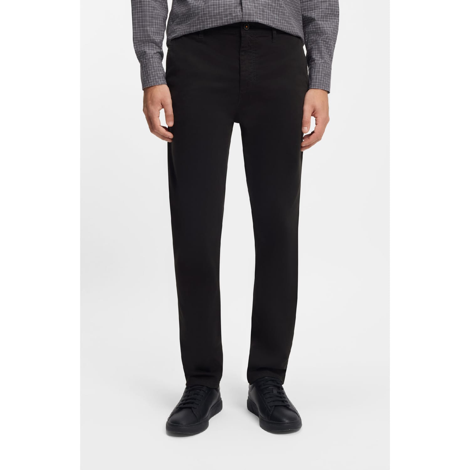 Regular-rise chinos by BOSS Menswear, cut to a tapered fit in stretch-cotton satin with a soft and comfortable touch.