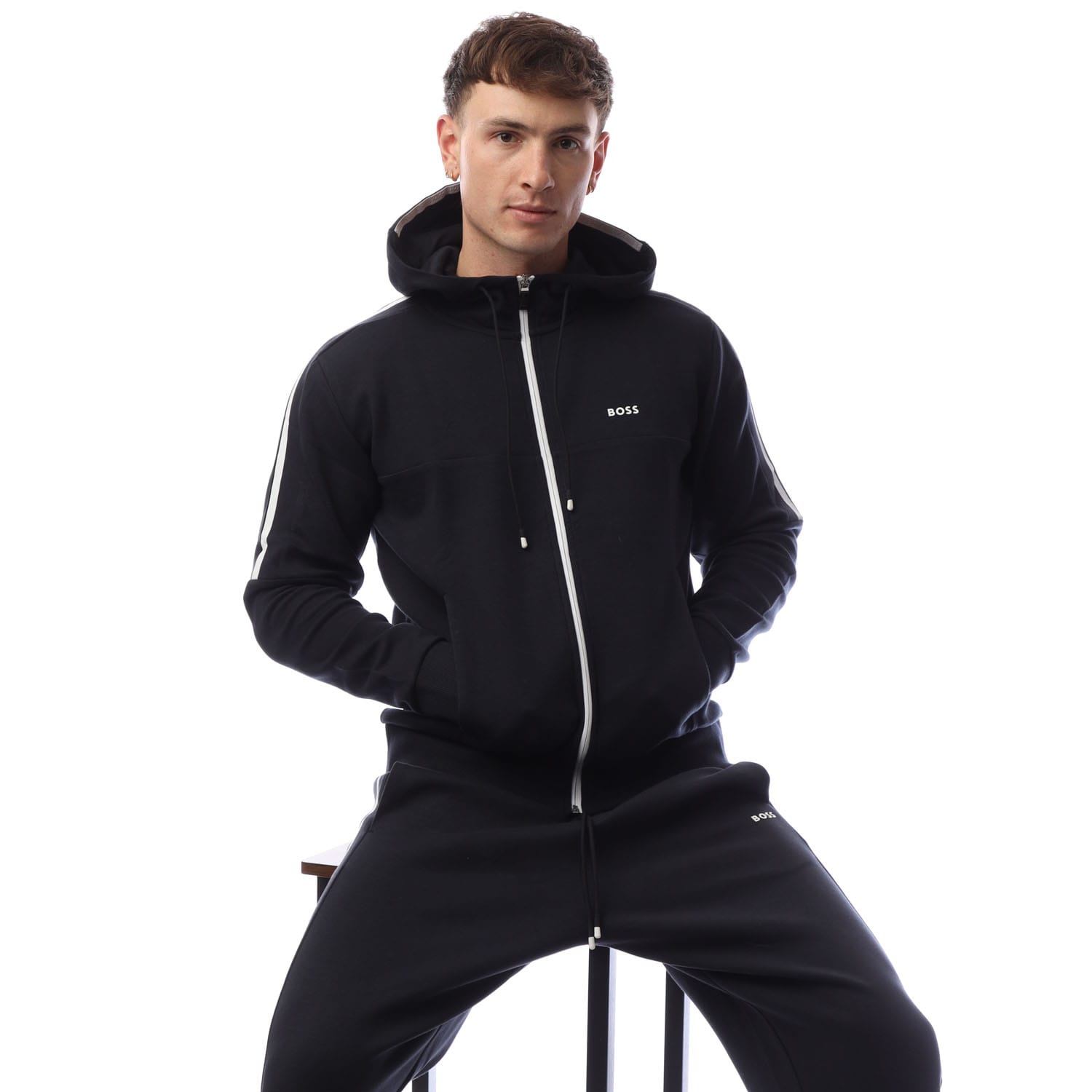 Mens BOSS Saggynos Zip Hoodie in dark blue.