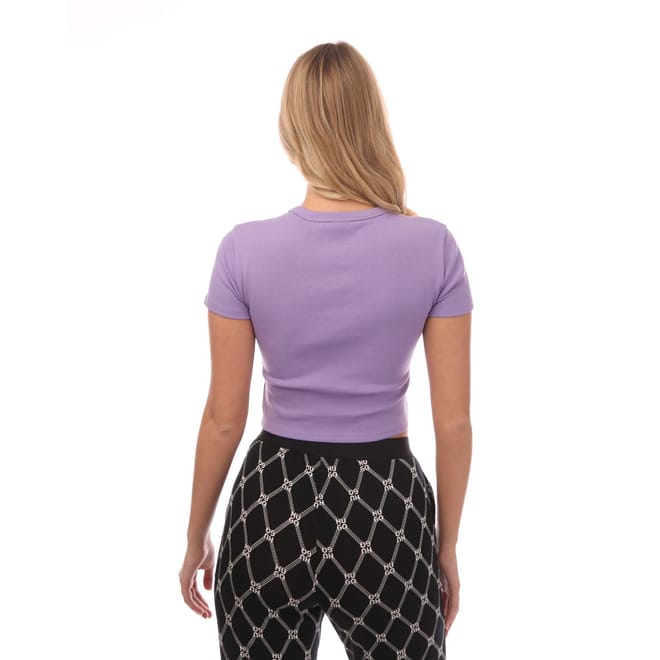 Womens HUGO Delanor Cotton Blend Slim Fit T-Shirt with Embroidered Logo in open purple.
