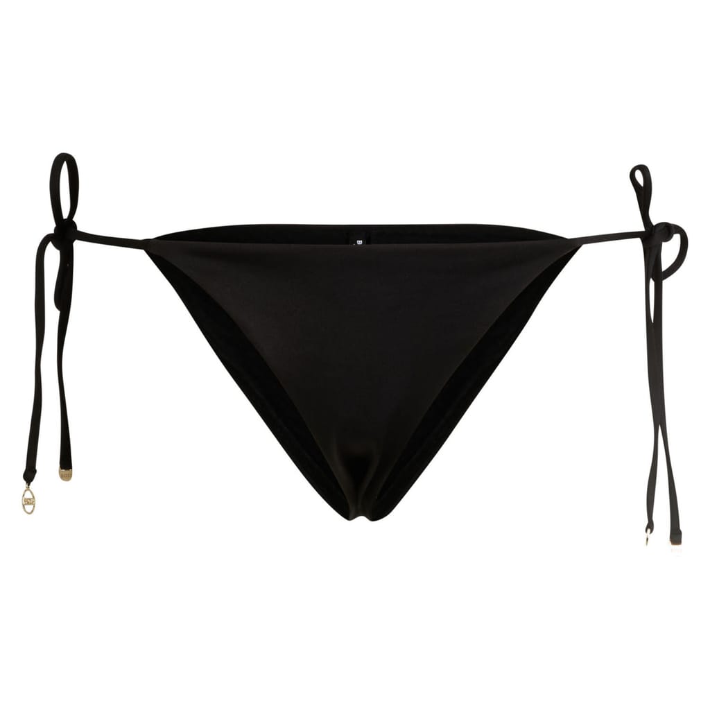 Womens BOSS Bella Tie-Side Bikini Bottoms with Logo Charm in black.