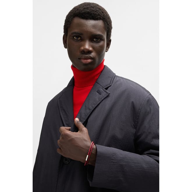 A statement cuff by HUGO, crafted in braided Italian leather with a two-tone effect and branded metallic closure.