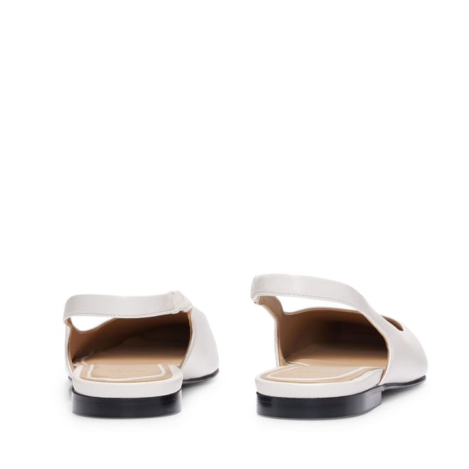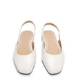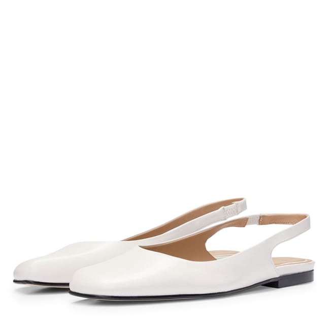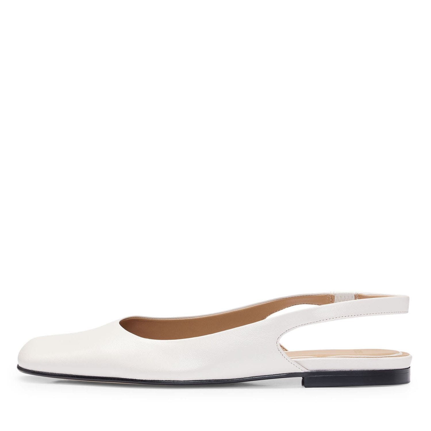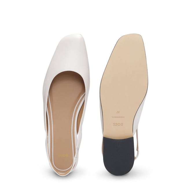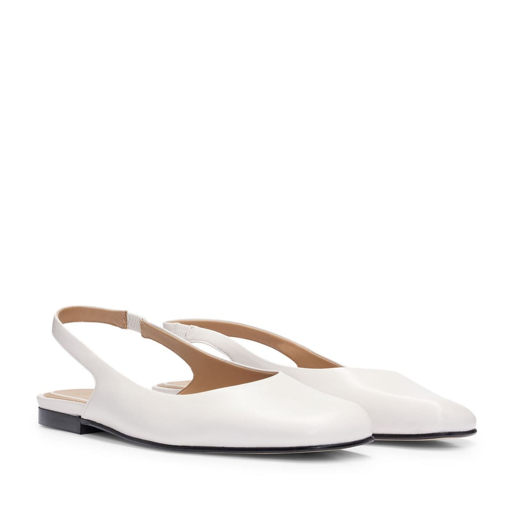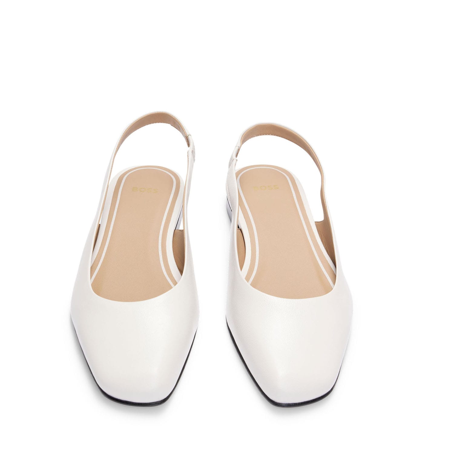 Womens BOSS Leather Ballet Flats with Slingback Strap and Square Toe in natural.