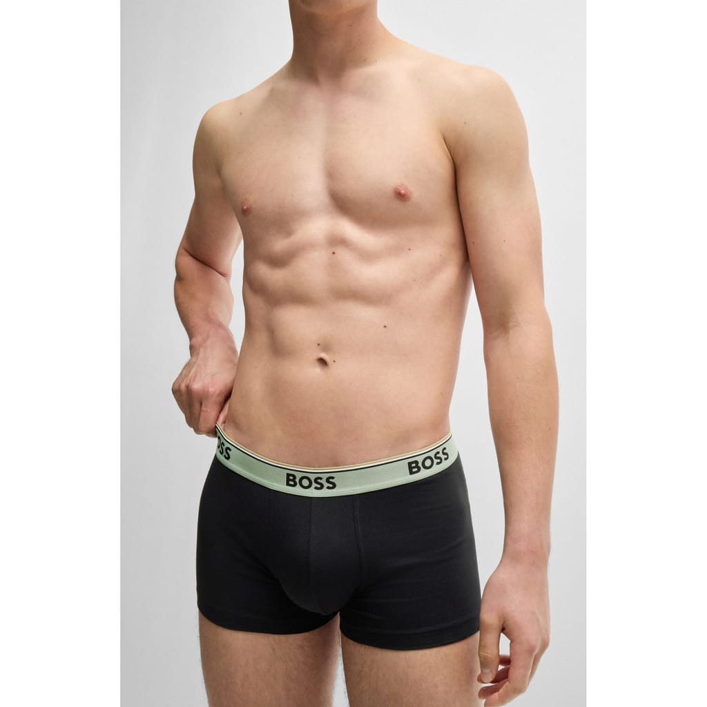 Mens BOSS Three Pack of Logo Waistband Trunks in Stretch Cotton