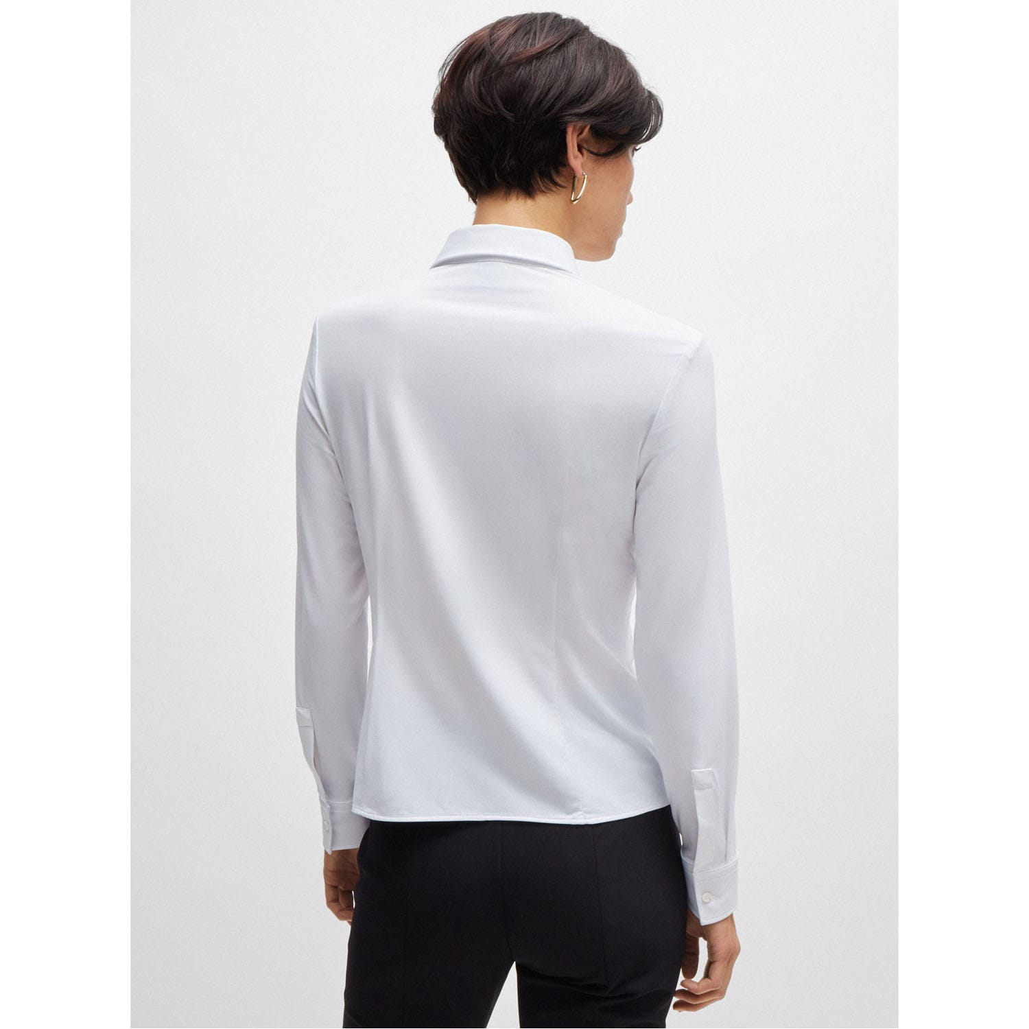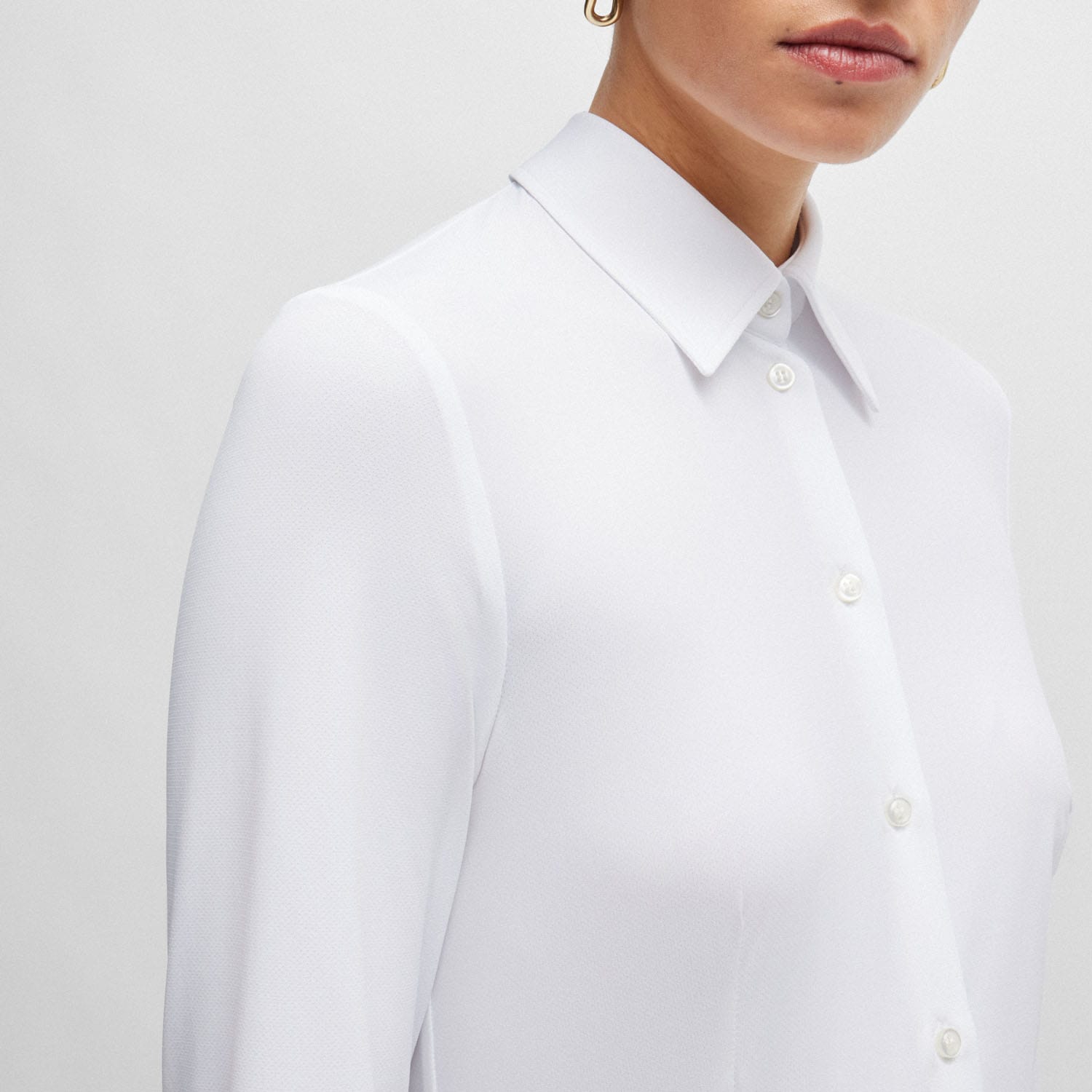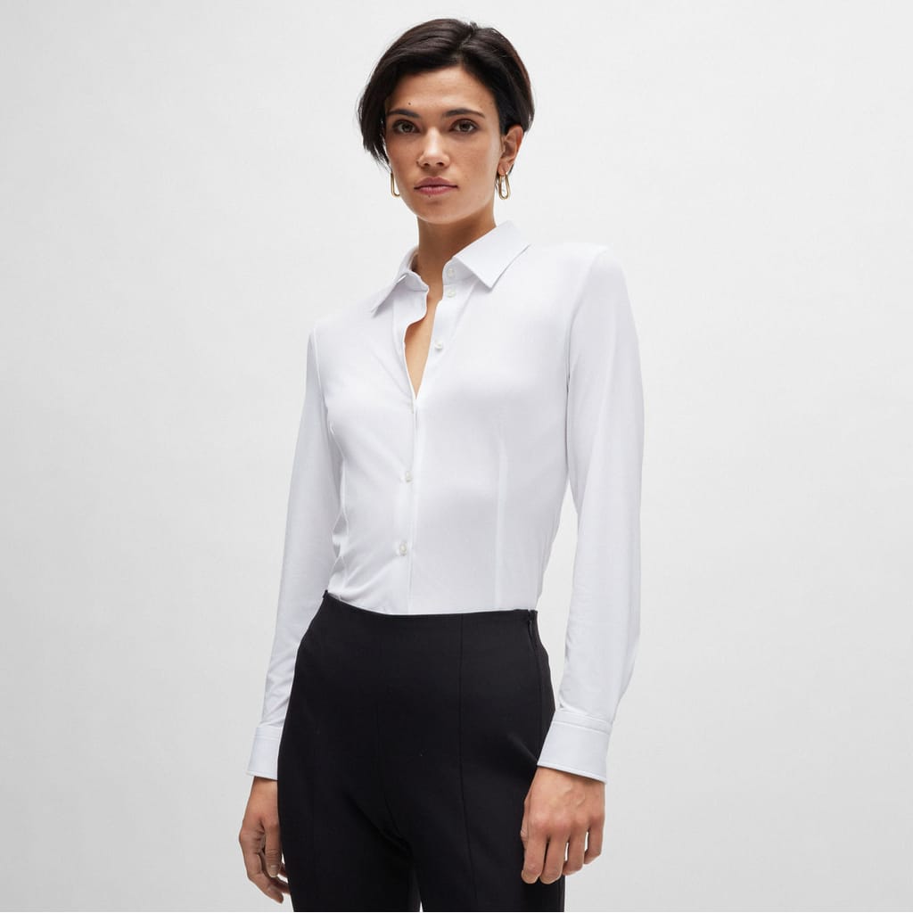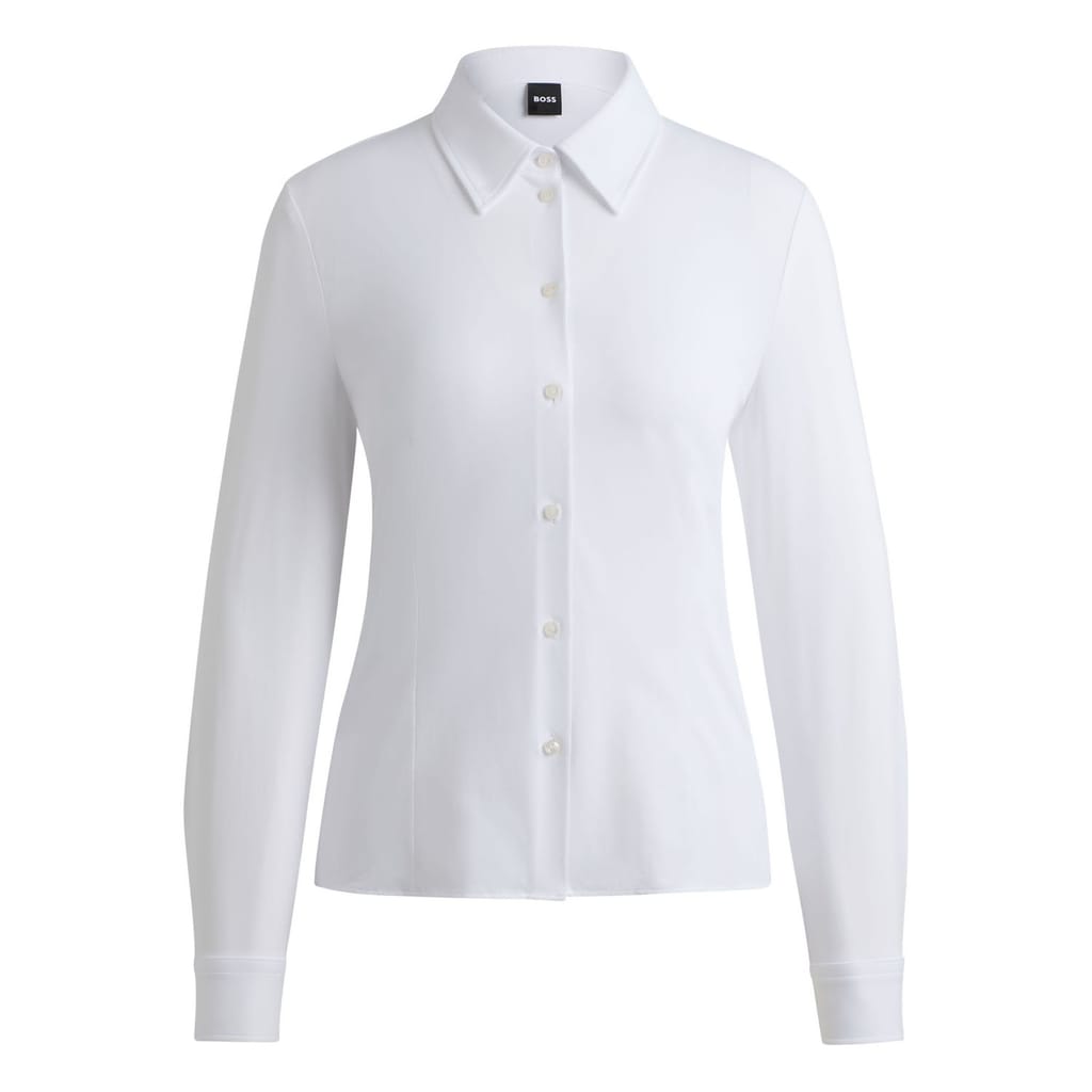 An advanced blouse by BOSS Womenswear, tailored to an extra-slim fit in Italian-made fabric with a micro-dobby weave and performance-stretch qualities.