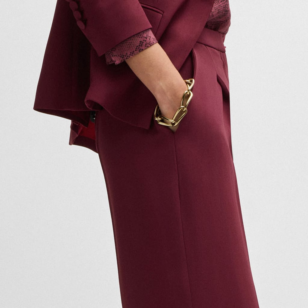 High-waisted formal trousers with a straight leg by BOSS Womenswear. With a pleated waistline, this pair is crafted in matte fabric for versatile styling.
