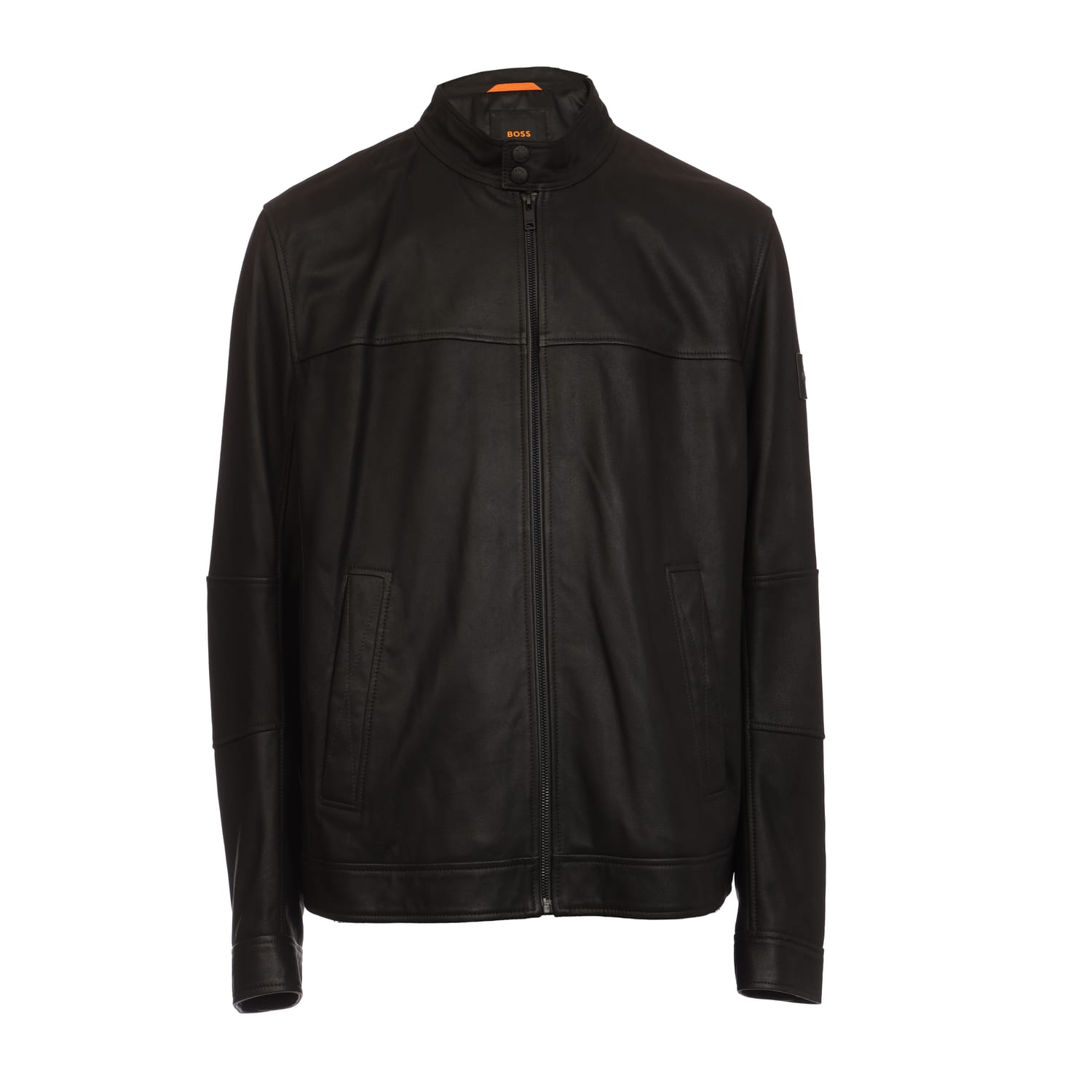 Mens Boss Joseph1 Leather Biker Jacket in black.