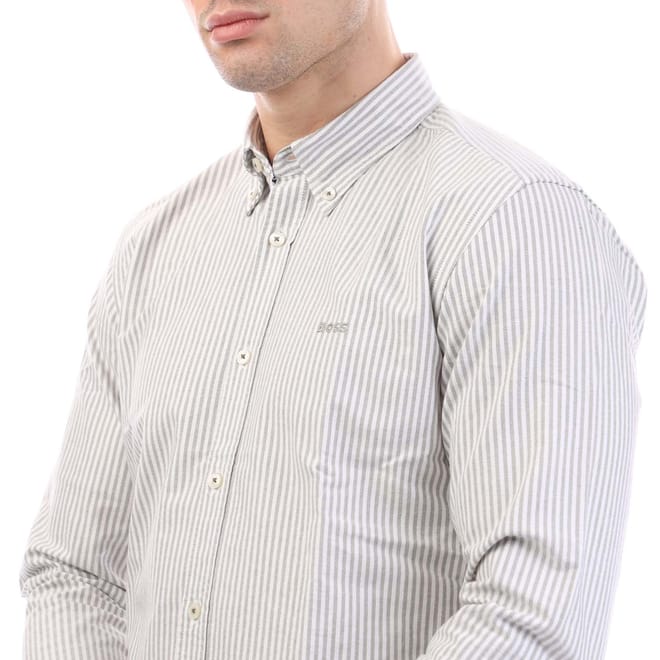 A striped shirt in a defined fit by BOSS Menswear. Featuring a button-down collar and logo detail, this piece is crafted in soft Oxford material.