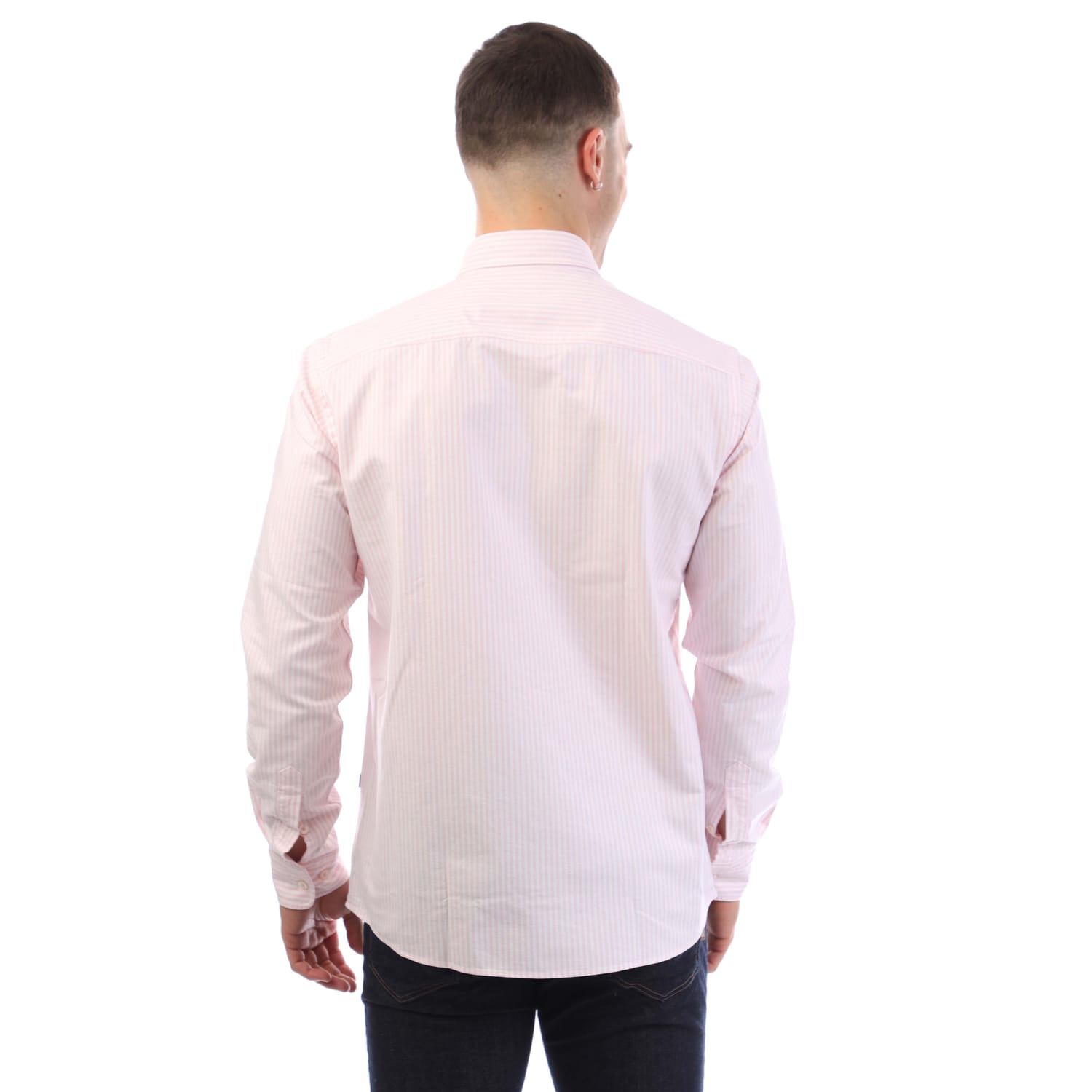 Mens BOSS H-Roan Slim Fit Shirt in Striped Oxford Cotton in light / pastel pink.