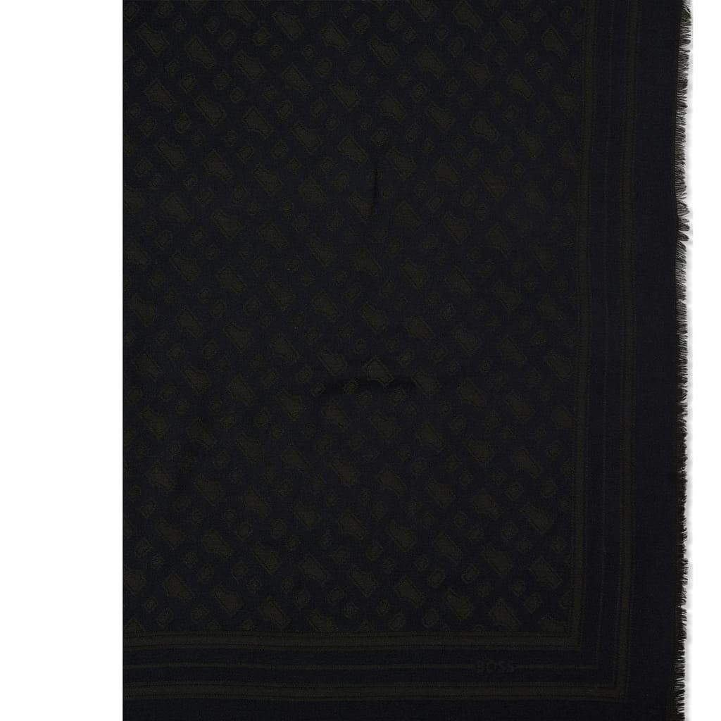 Mens BOSS Ylona Monogram-jacquard scarf in a wool blend in black