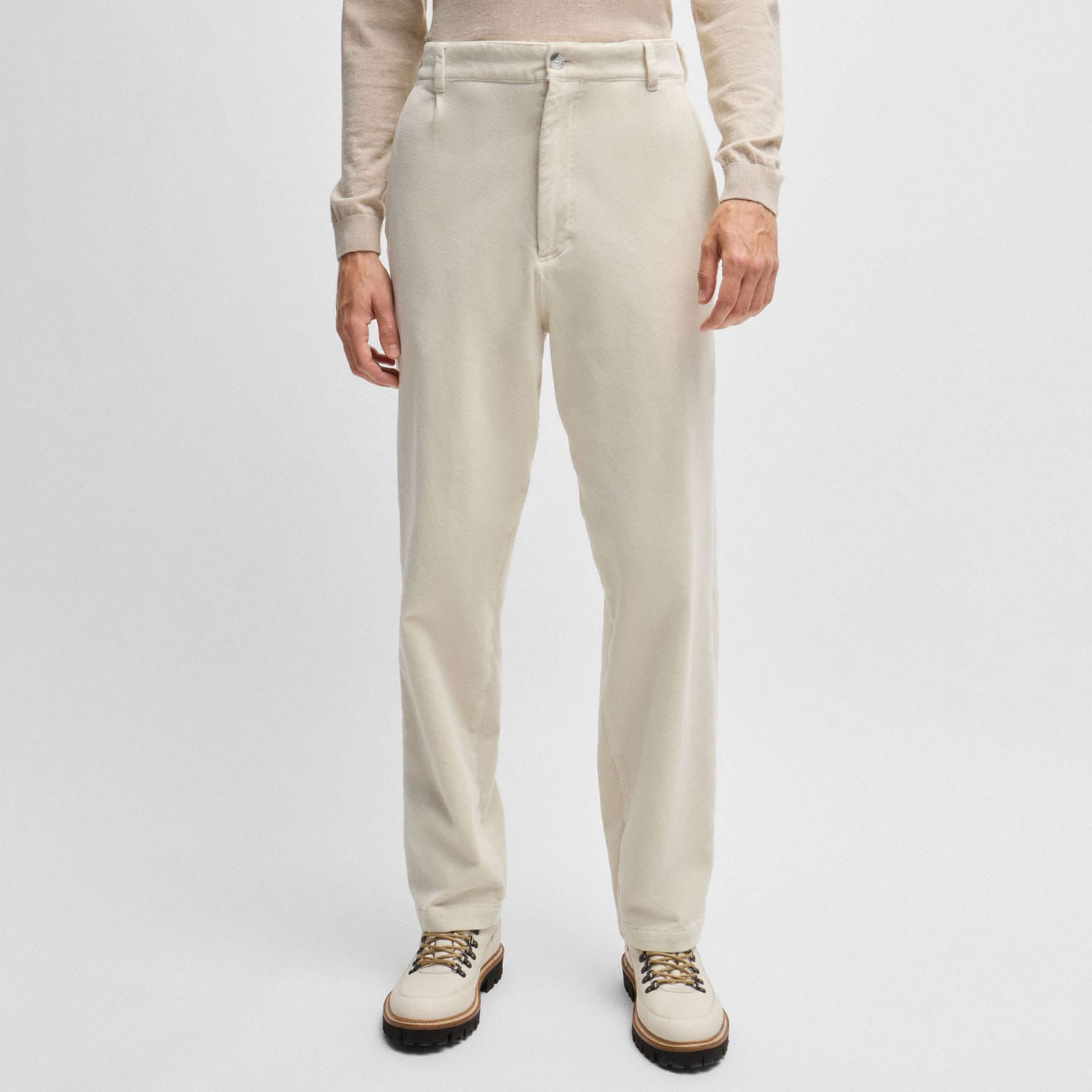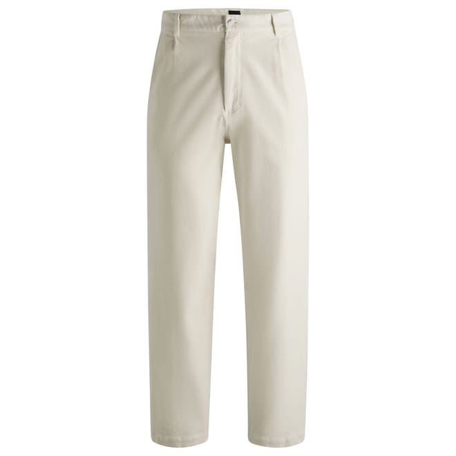 Easy-wear trousers in a relaxed fit with front pleats by BOSS. This pair is crafted in stretch cotton with a velvet touch.