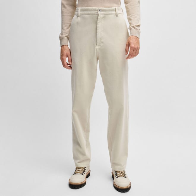 Mens BOSS C-Kai_DPL Relaxed Fit Trousers in Stretch Cotton Velvet in white.