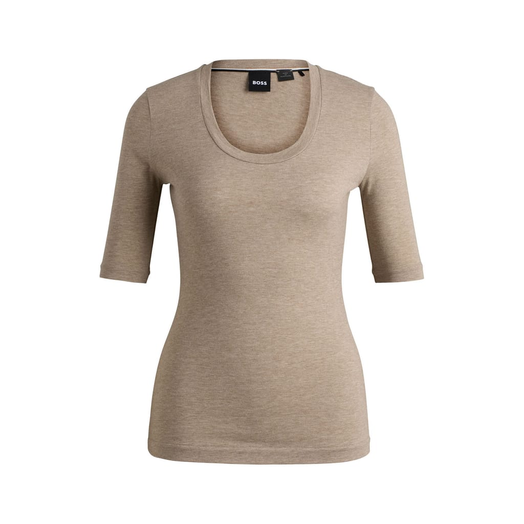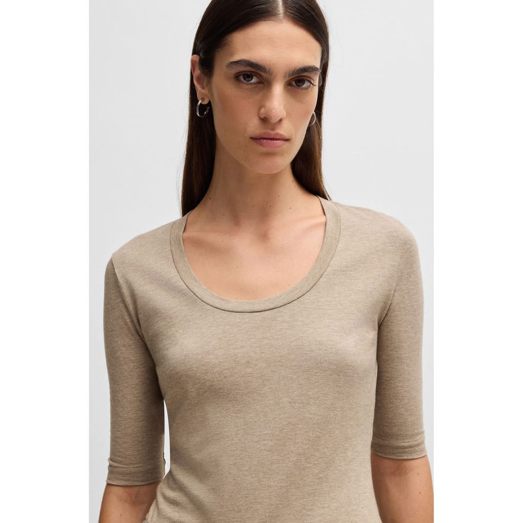 A cropped-sleeve top with a scoop neck by BOSS. This super-soft design is crafted in cotton blended with wool for comfort.
