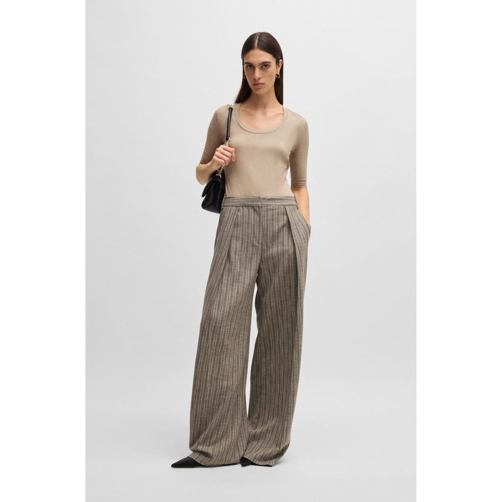Womens BOSS Effilie2 Scoop-neck top in wool and cotton in open grey