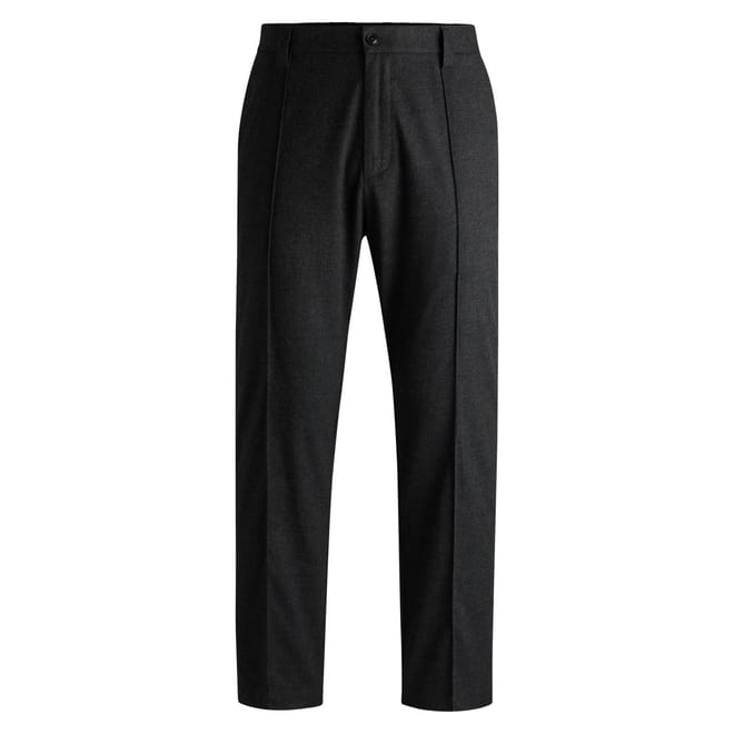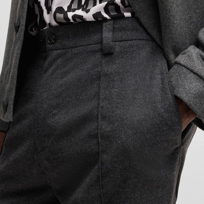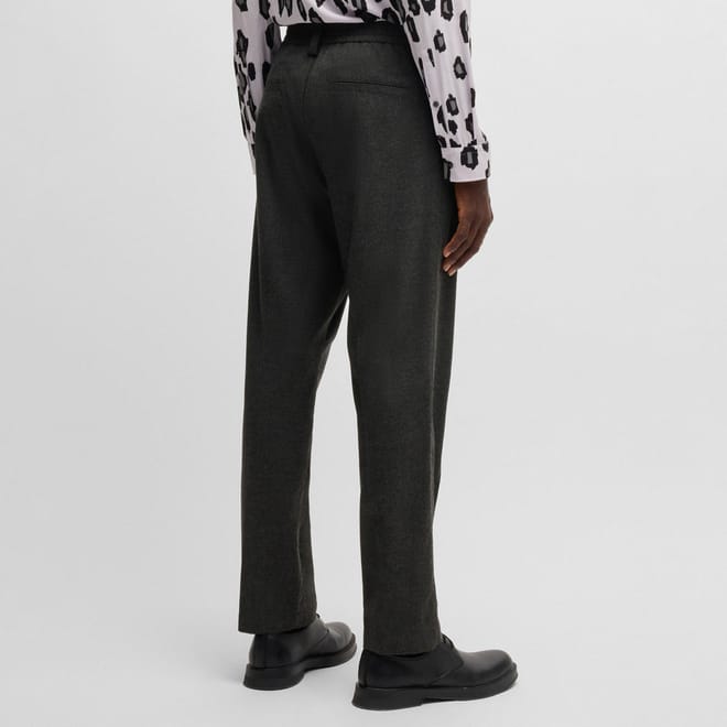 straight leg trousers / tapered fit / button & zip closure / welt pockets with button at back / side slash pockets / elasticised waist / waistband with belt loops / melange -