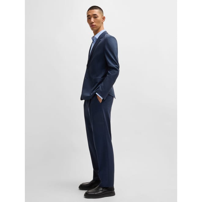 Mens HUGO Gos241F1J Slim-Fit Trousers in Melange Super-Flex Twill in dark blue
