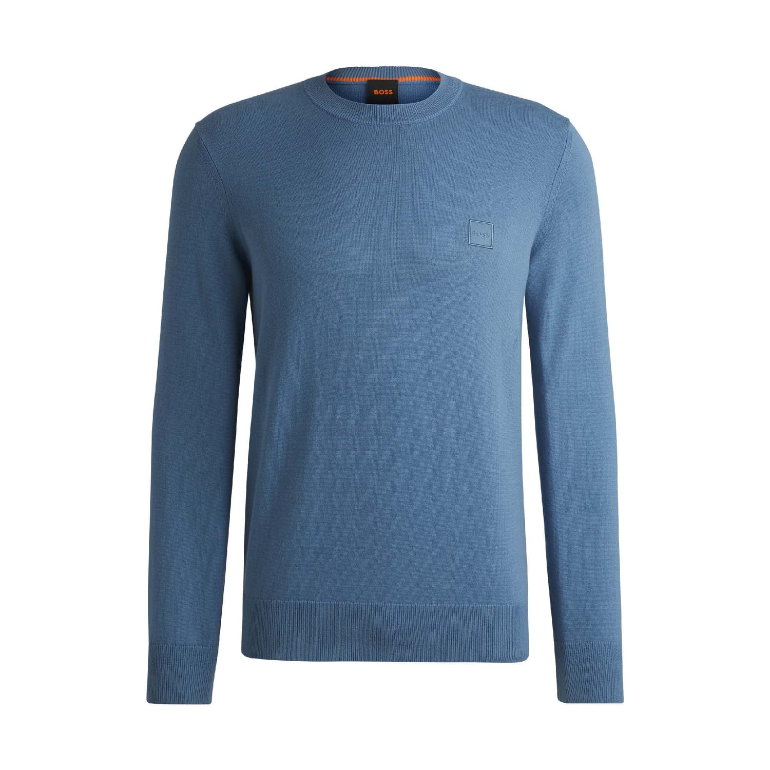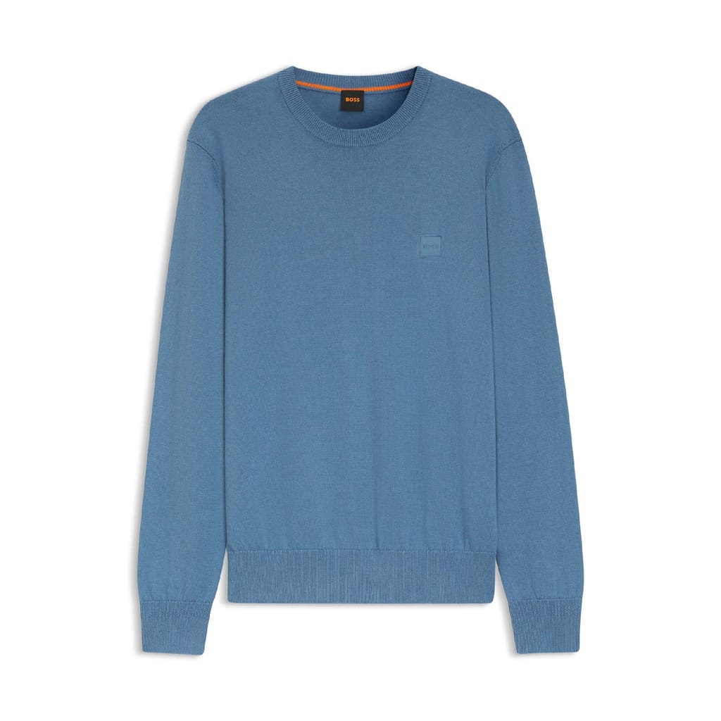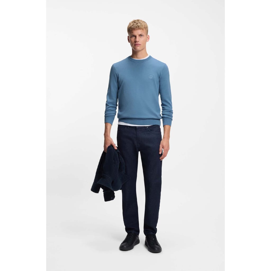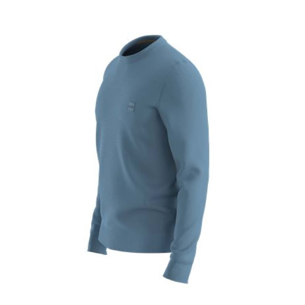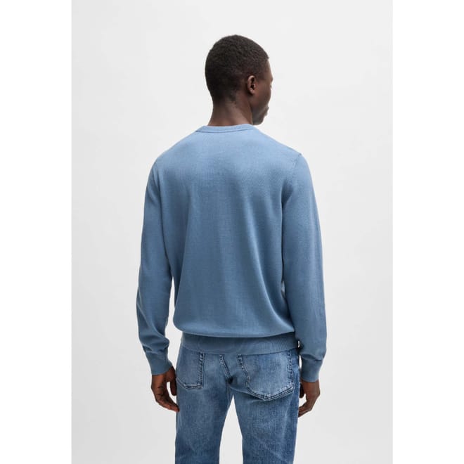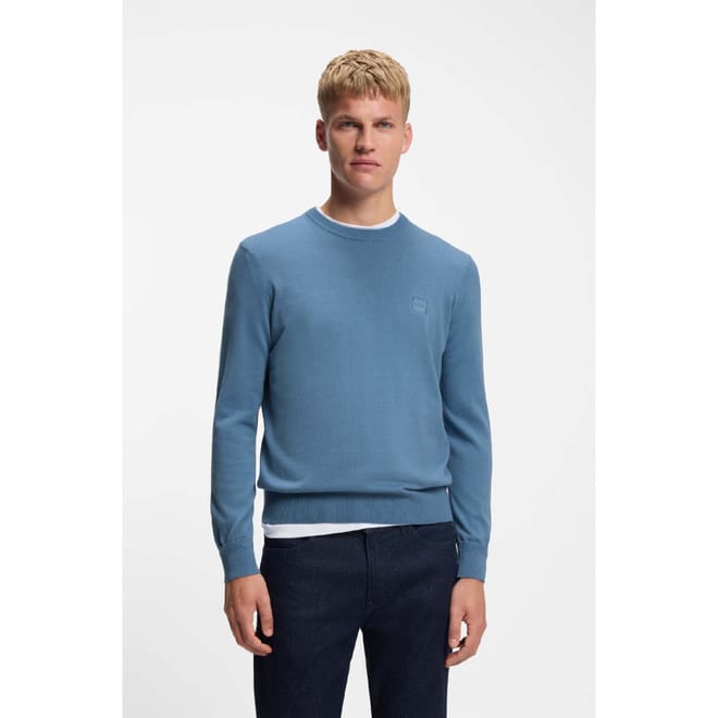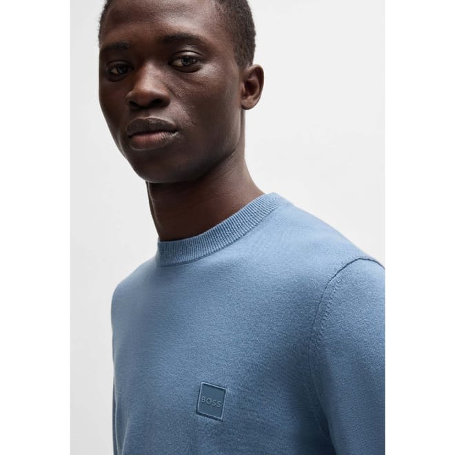 Mens BOSS Kanovano S Logo Label Sweater in Cotton and Cashmere in open blue