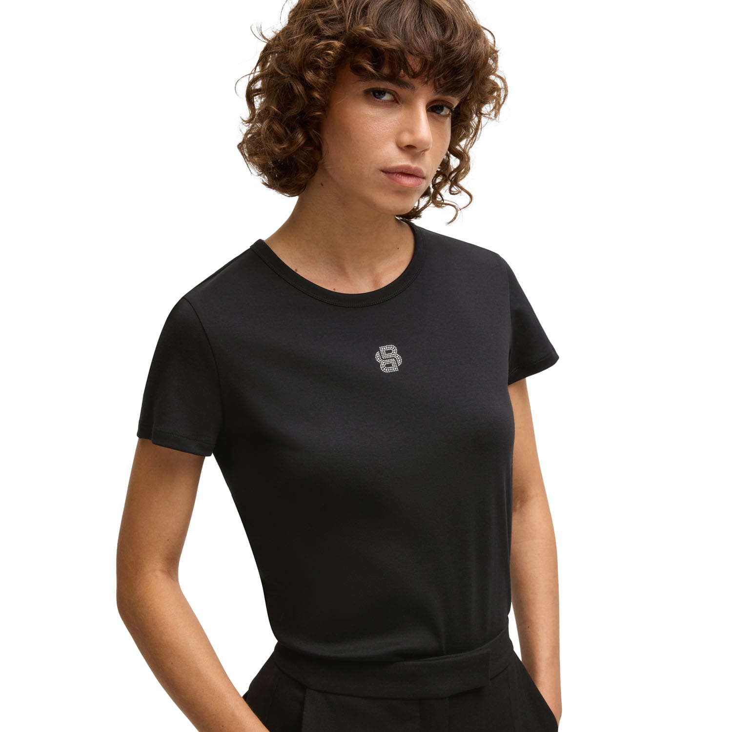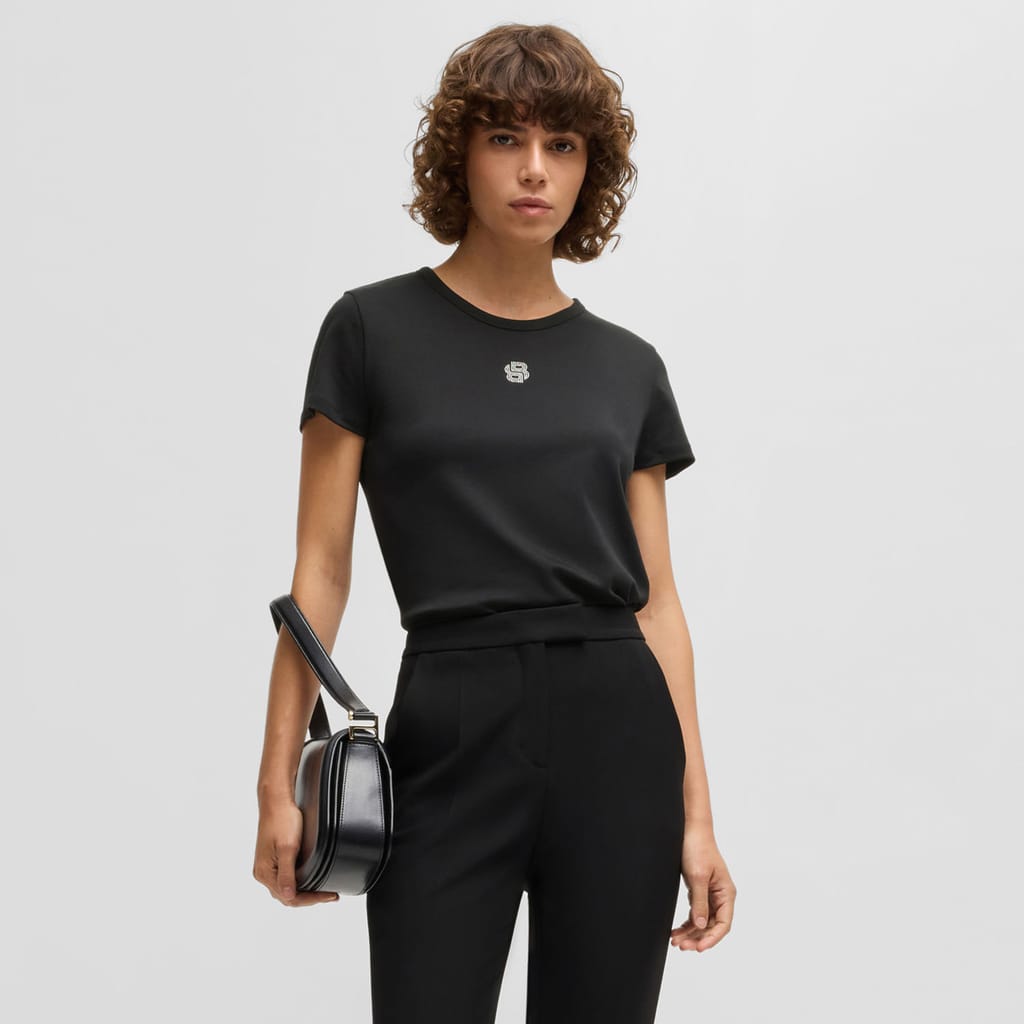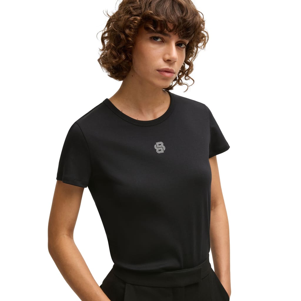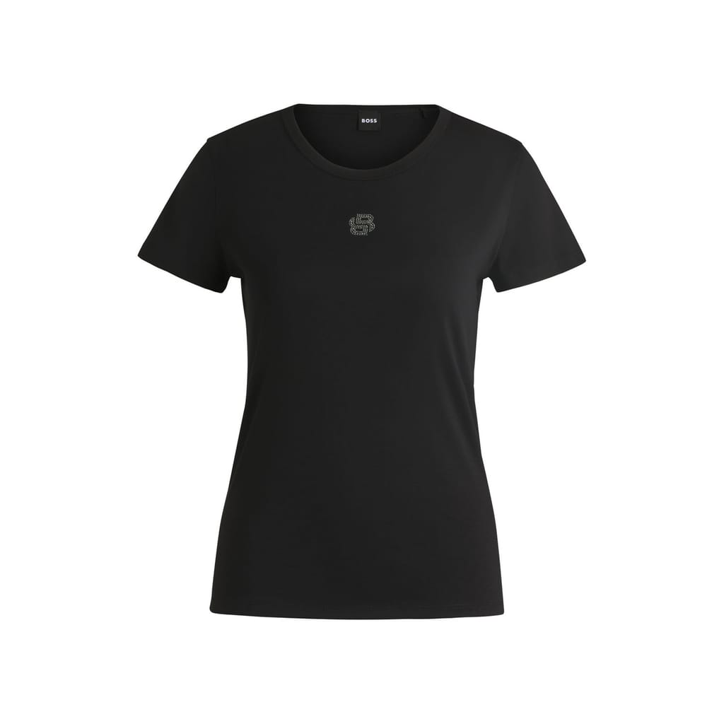 A signature T-shirt crafted in soft interlock cotton by BOSS. This top features a Double B monogram with crystal embellishments.