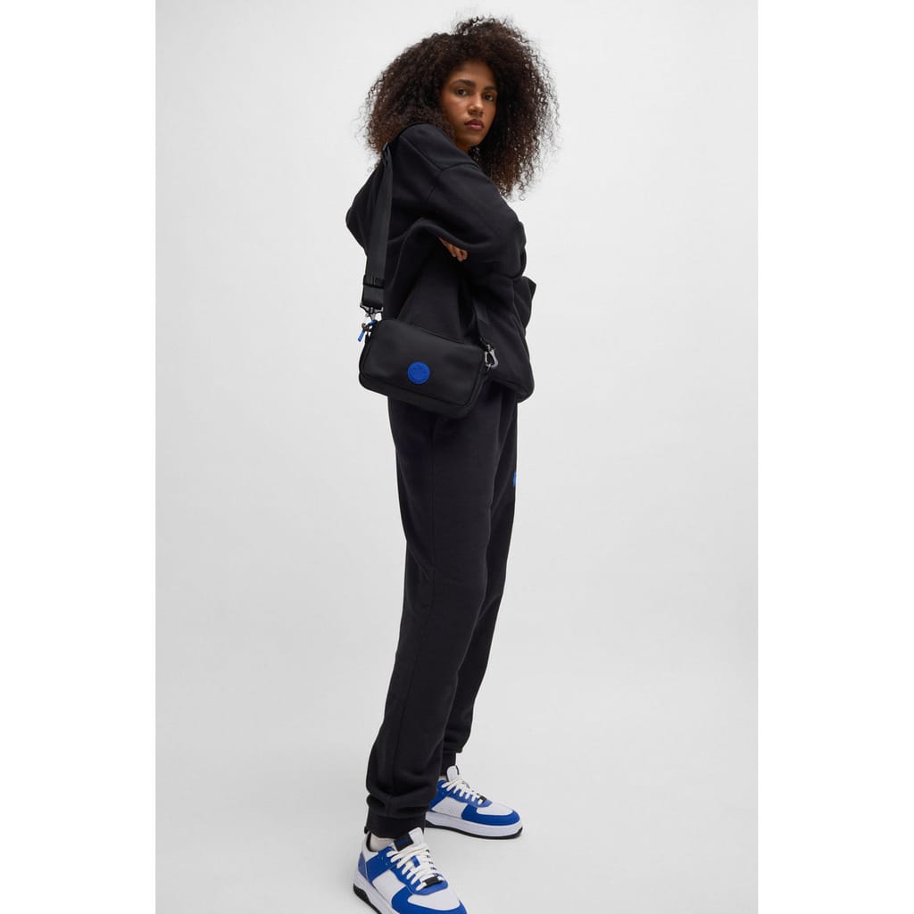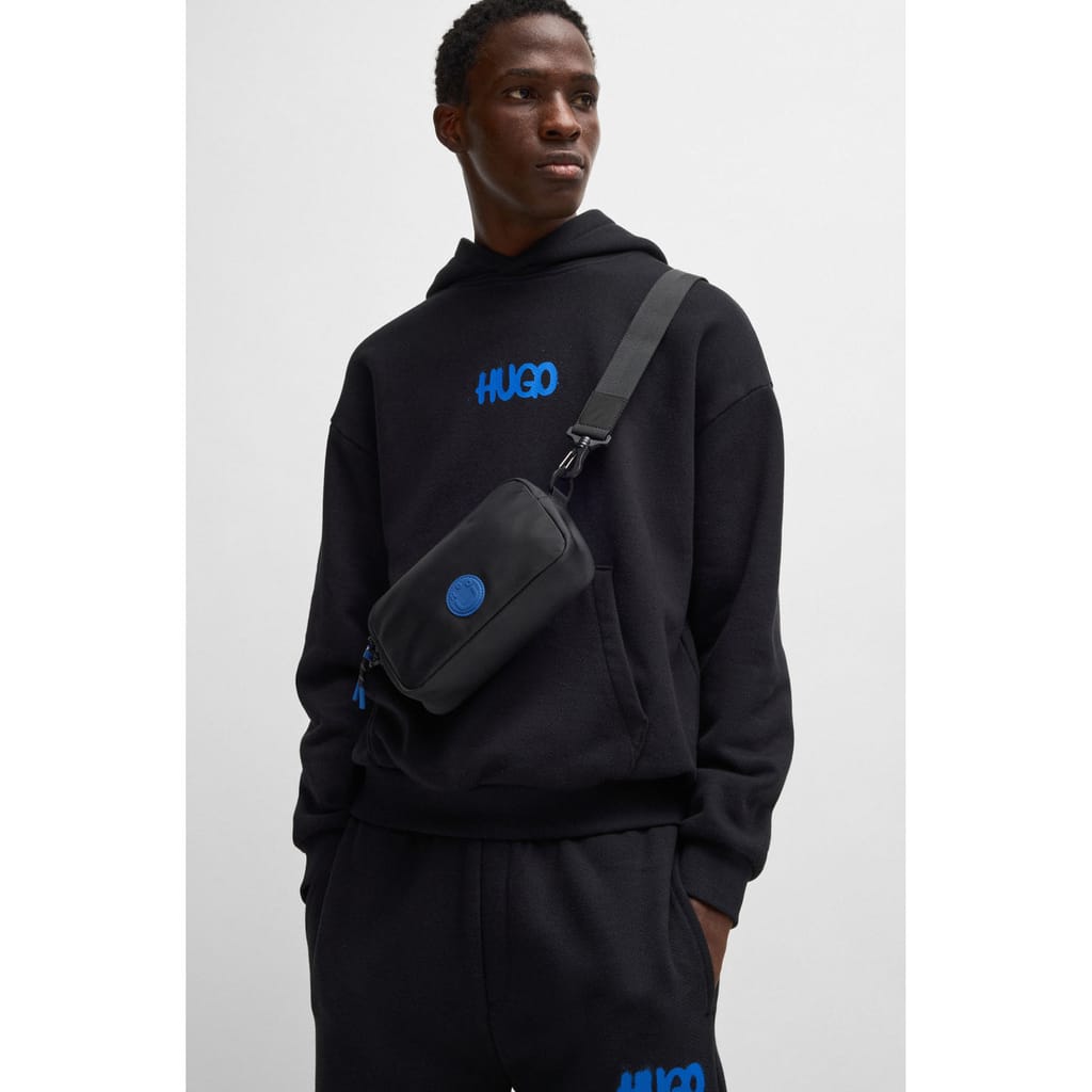 Womens HUGO Vytal 2.0 Crossbody bag with smiley-face logo patch in black