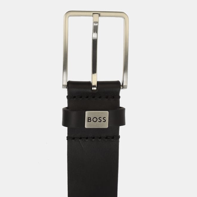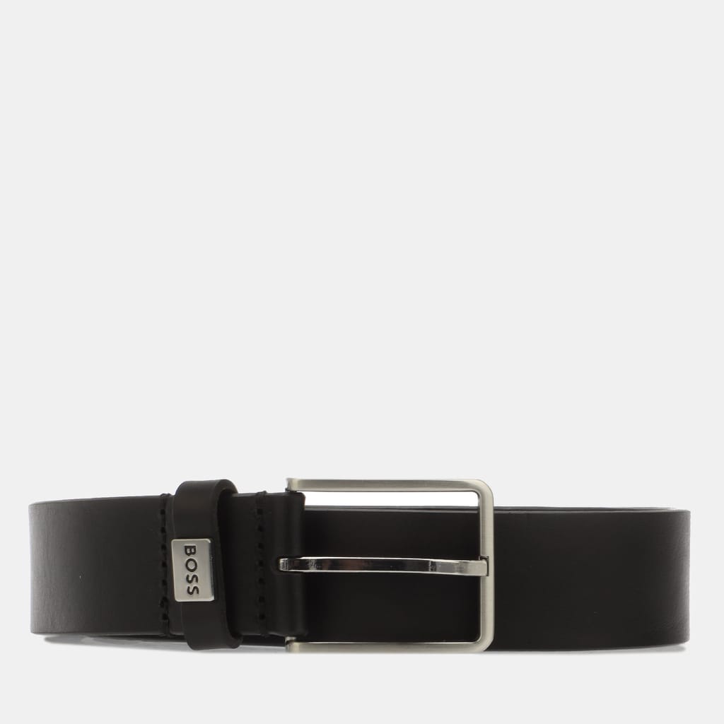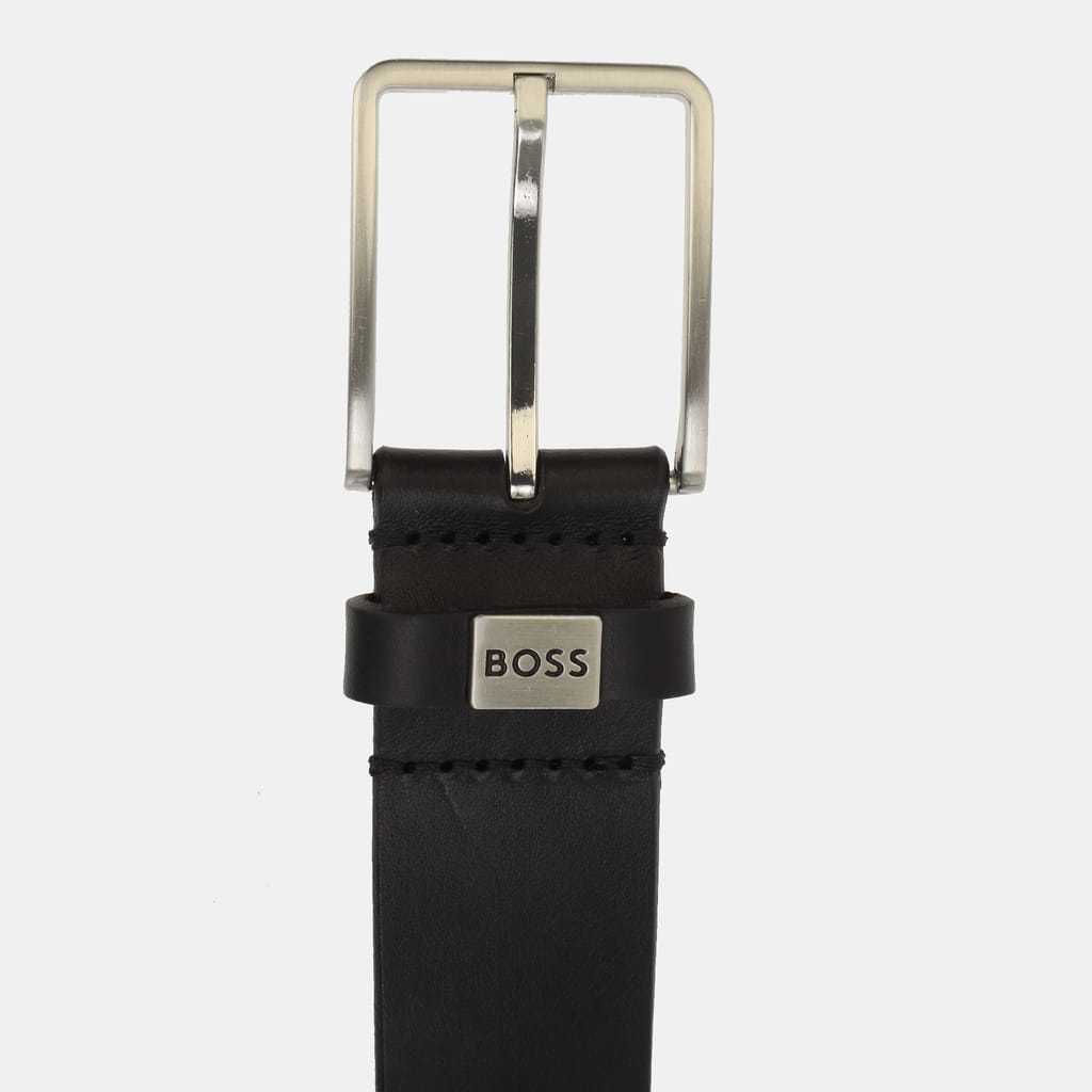 Mens BOSS Elio Italian Leather Belt with Logo Keeper in black.